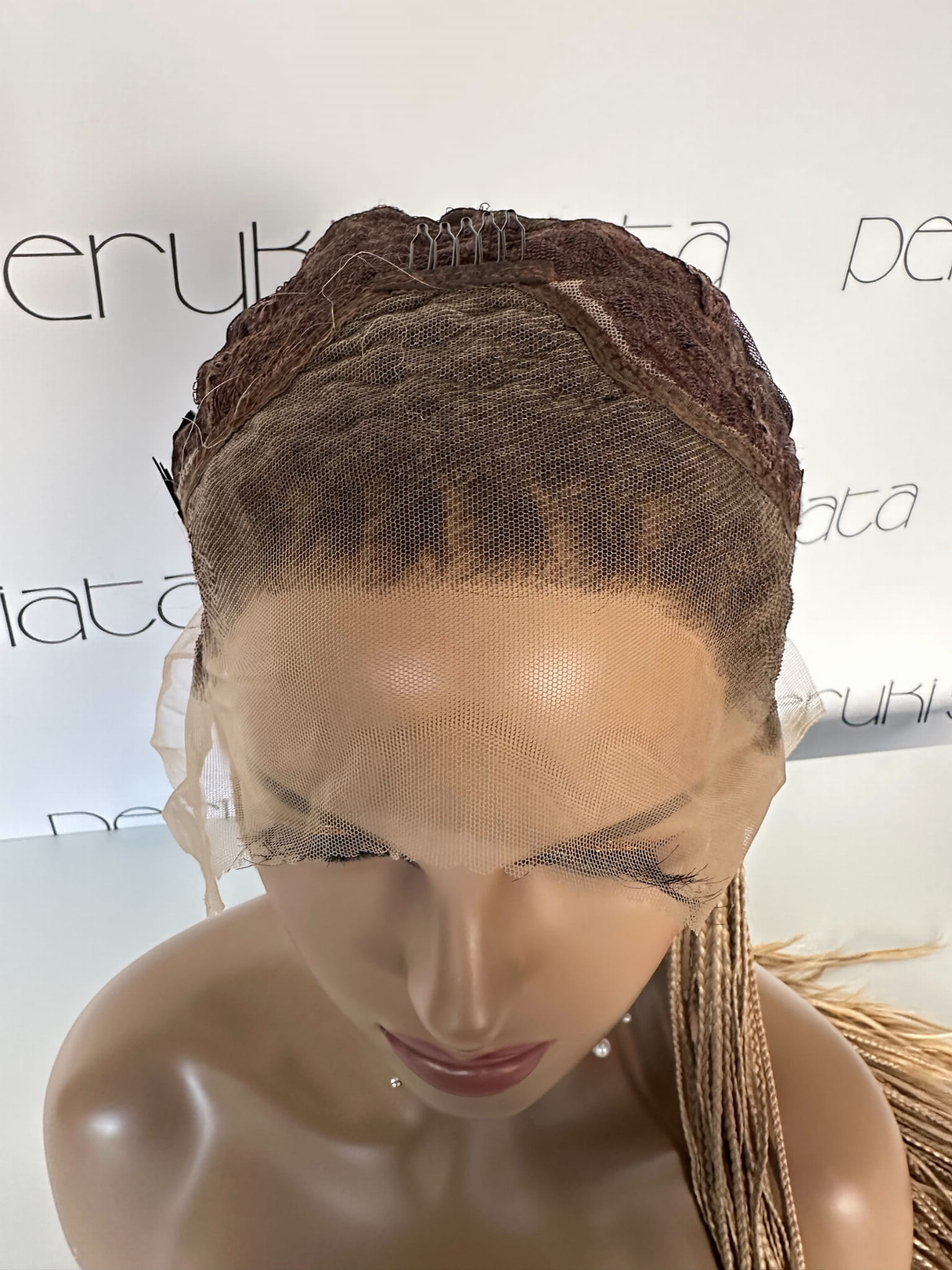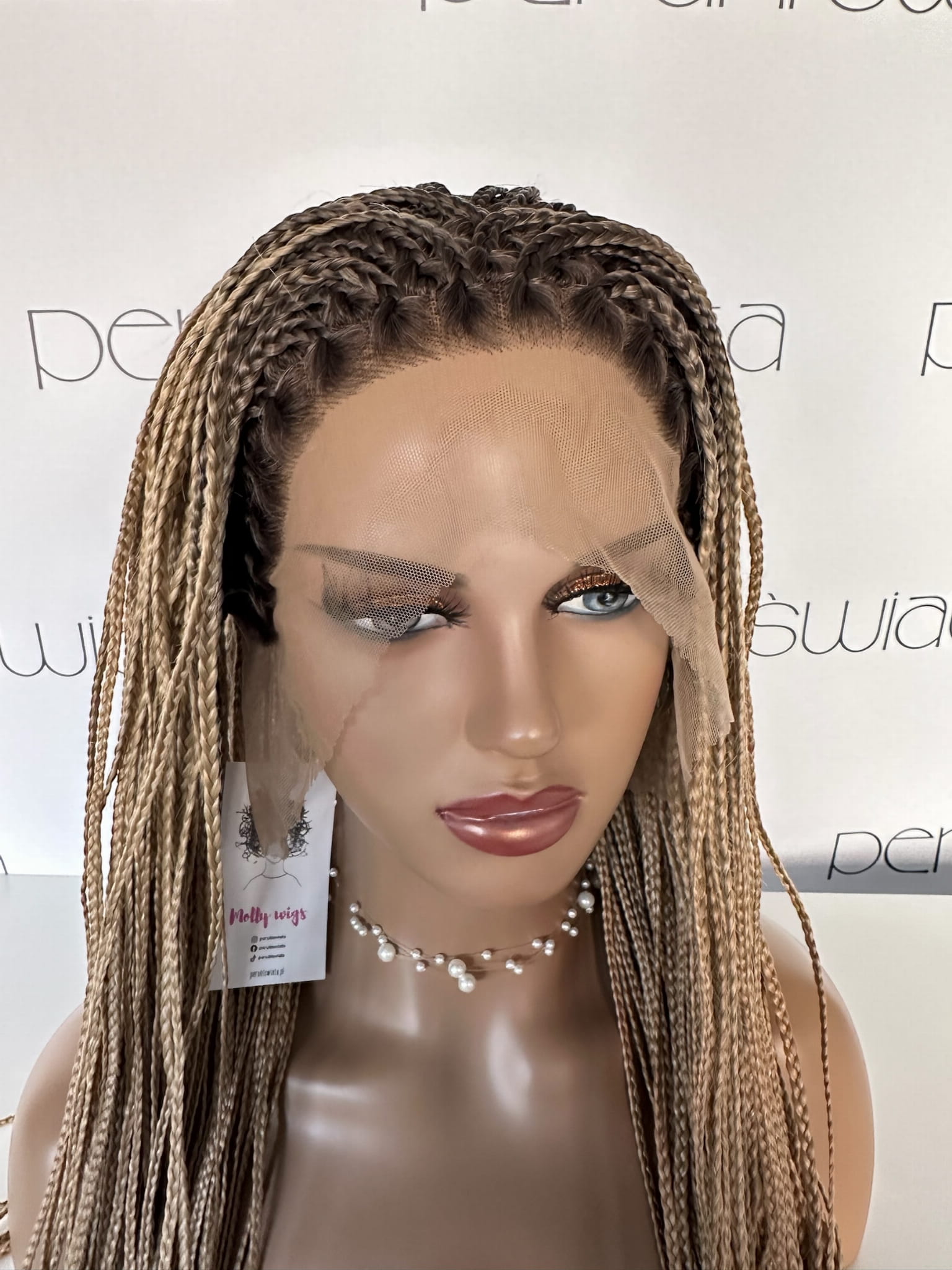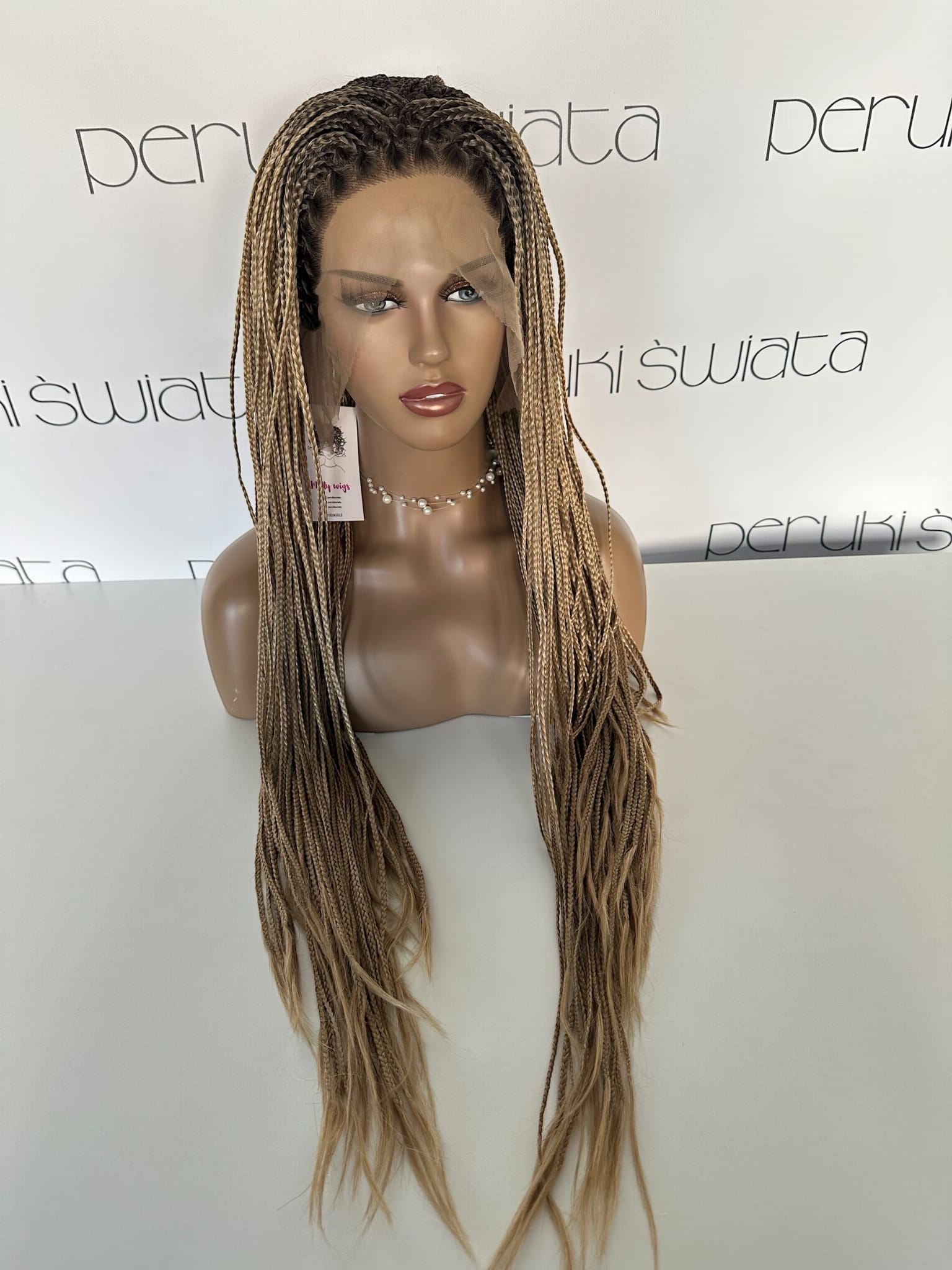 Peruka syntetyczna Elliott, warkoczyki, kolor: ombre, mix blondów z brązem