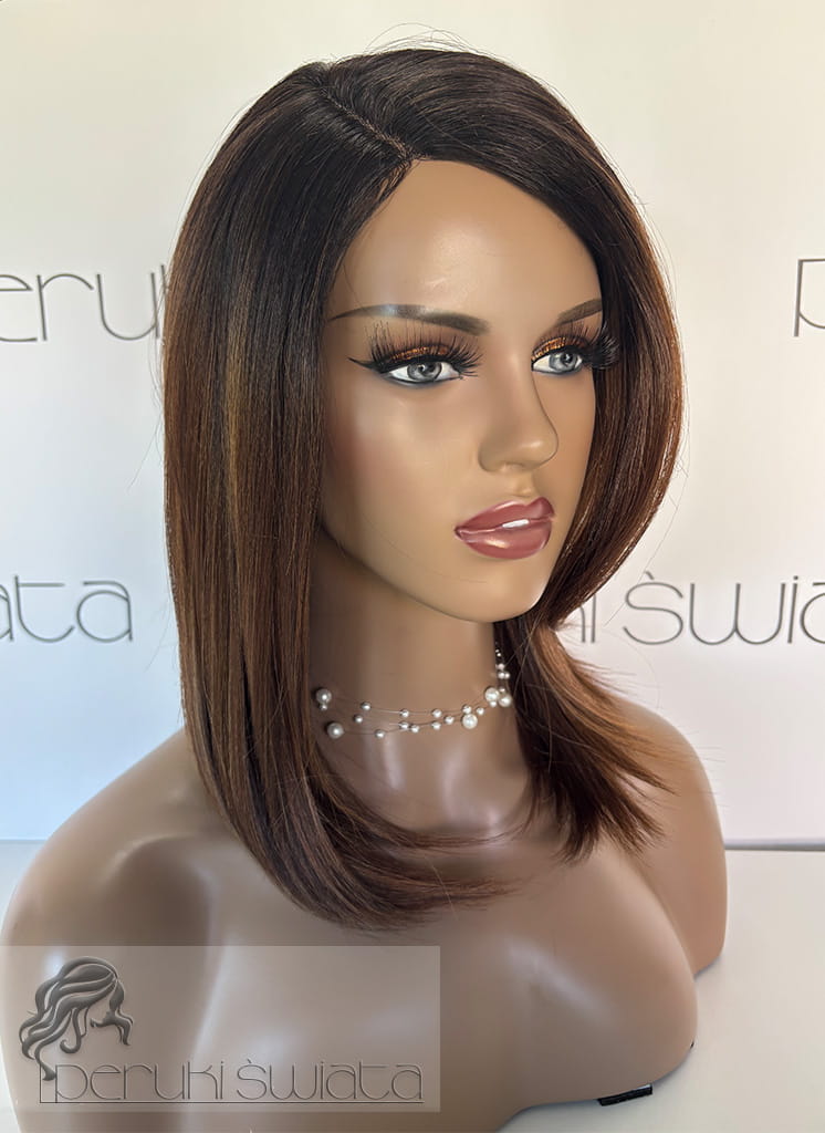 Peruka syntetyczna Ellody, long bob, kanekalon termoplastyczny, kolor: sombre brąz