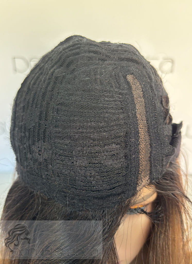 Czepek typu part lace, siateczka w przedziałku, przedziałek po stronie prawej