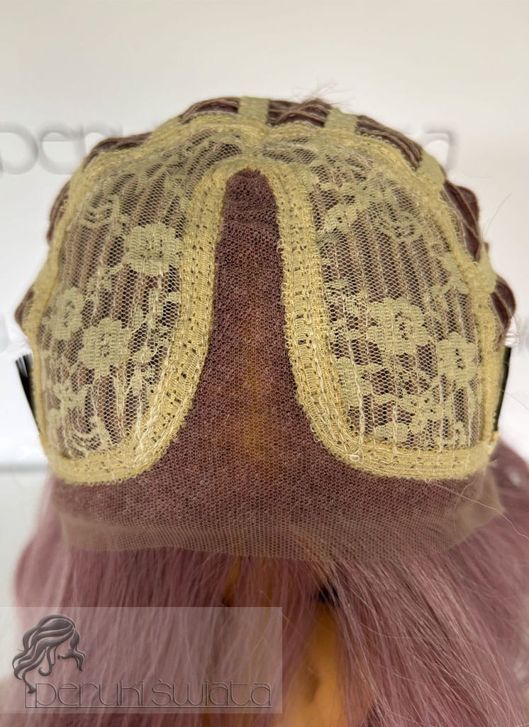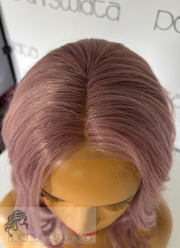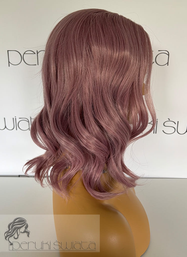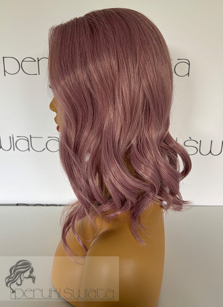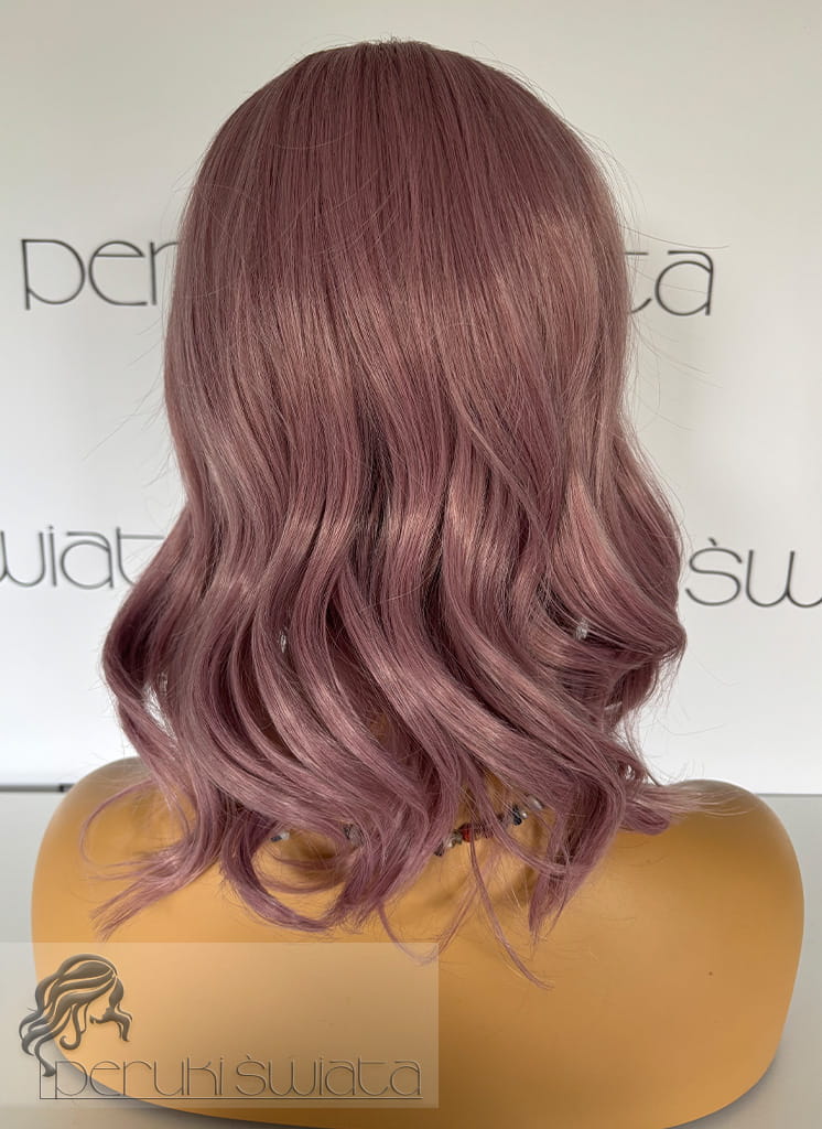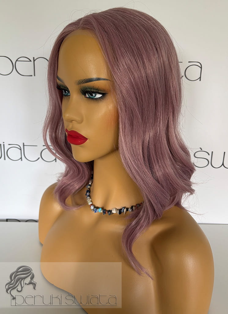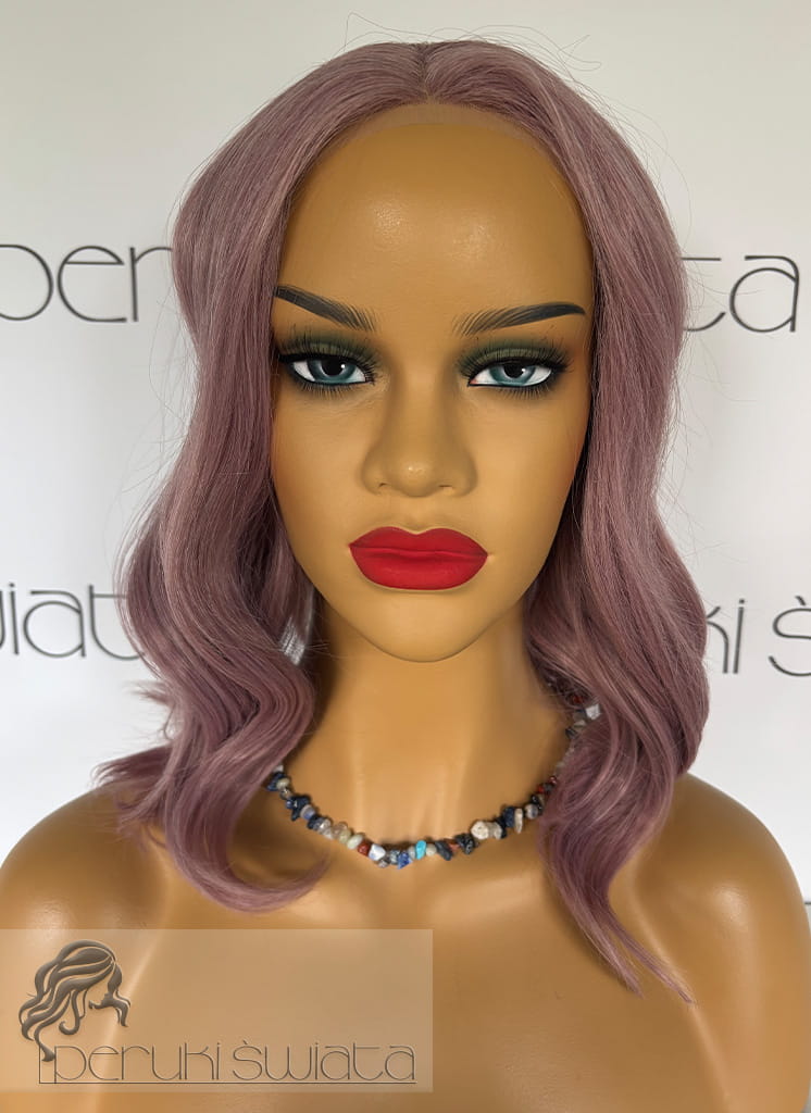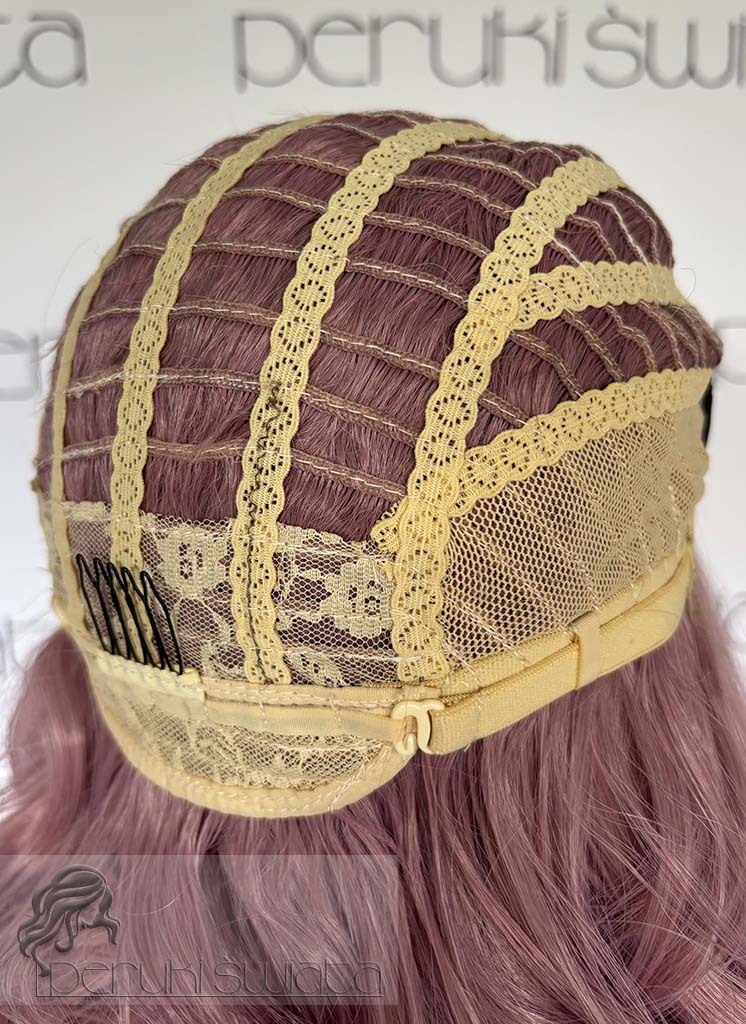 Peruka syntetyczna Esmeralda, czepek typu lace front, różowy fiolet, fale