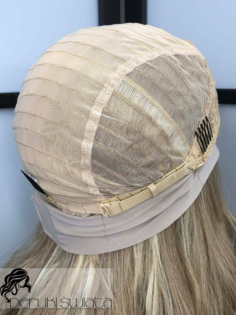 Peruka posiada regulację obwodu jak klasyczna peruka, grzebyki wszyte w czepek jako element dodatkowej stabilizacji oraz zapinaną na rzep opaskę z mikrofibry