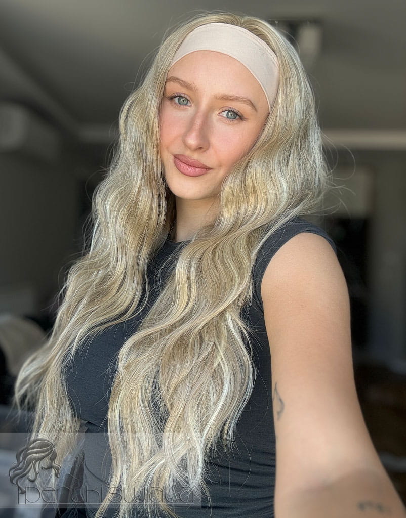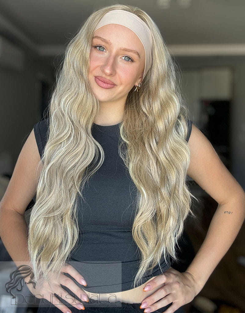 Lekka peruka syntetyczna Demi, włosy karbowane, kolor: jasny platynowy blond