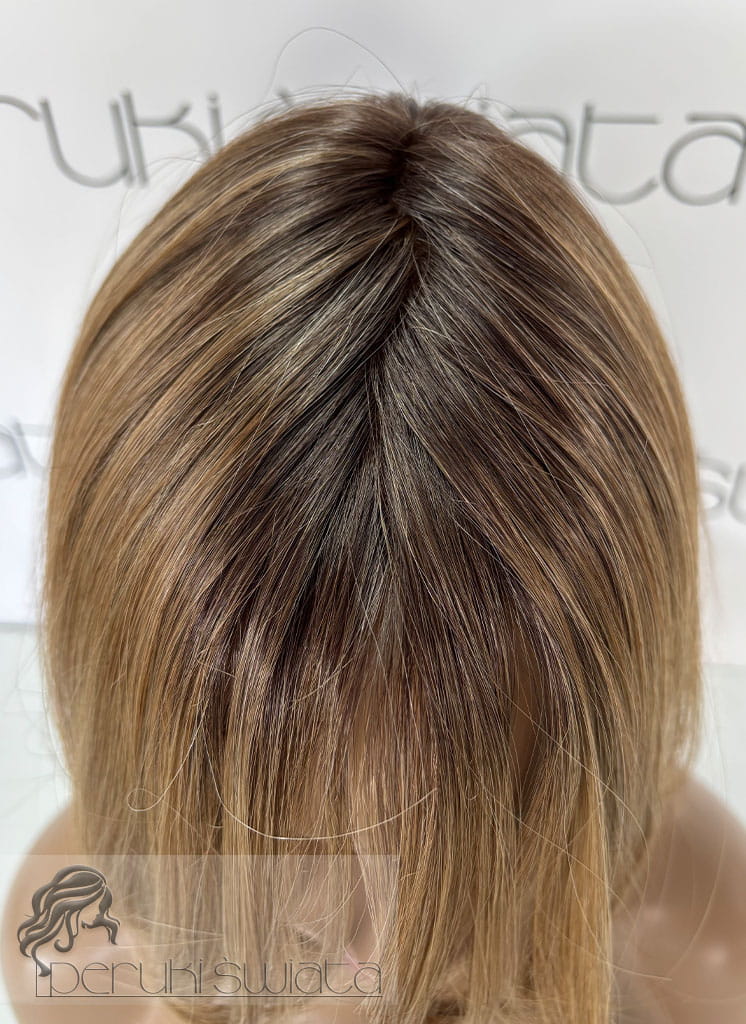 Peruka syntetyczna Francesca, monotop, ciepły, średni słowiański blond na subtelnym odroście