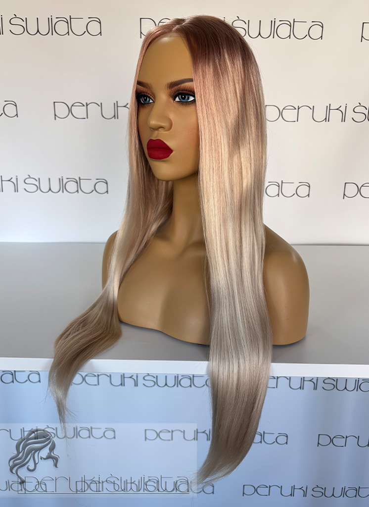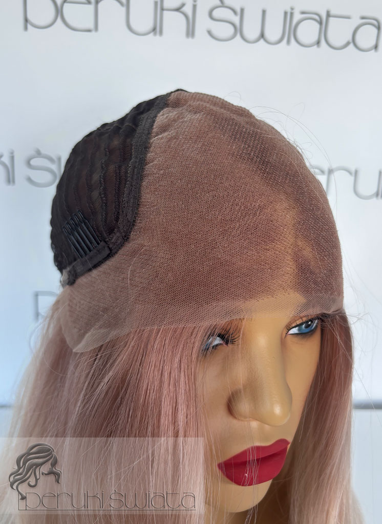 Czepek typu: full lace front (możliwość dowolnego zaczesania przedziałka w obrębie siateczki, podcięcia grzywki, efekt wyrastania włosów z głowy, rozmyta linia przednia peruki)