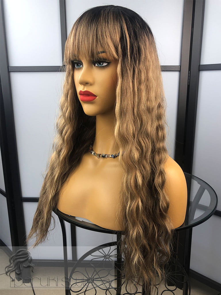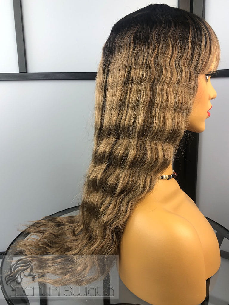 Peruka syntetyczna Giselle, kanekalon typu:„ true hair", mix słowiańskich blondów z lekkimi refleksami na odroście