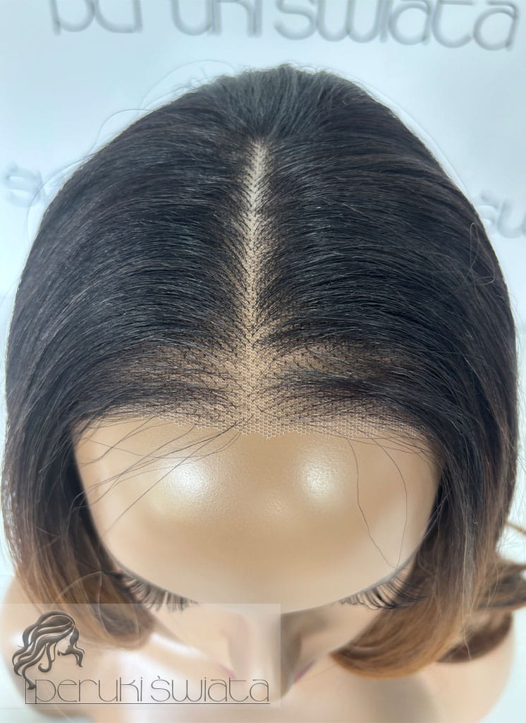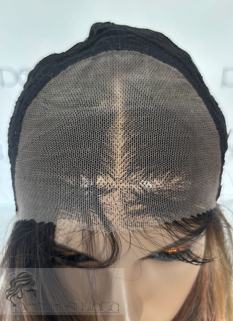 Czepek typu: full lace front (możliwość dowolnego zaczesania przedziałka w obrębie siateczki, podcięcia grzywki, efekt wyrastania włosów z głowy, rozmyta linia przednia peruki)