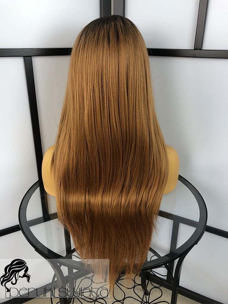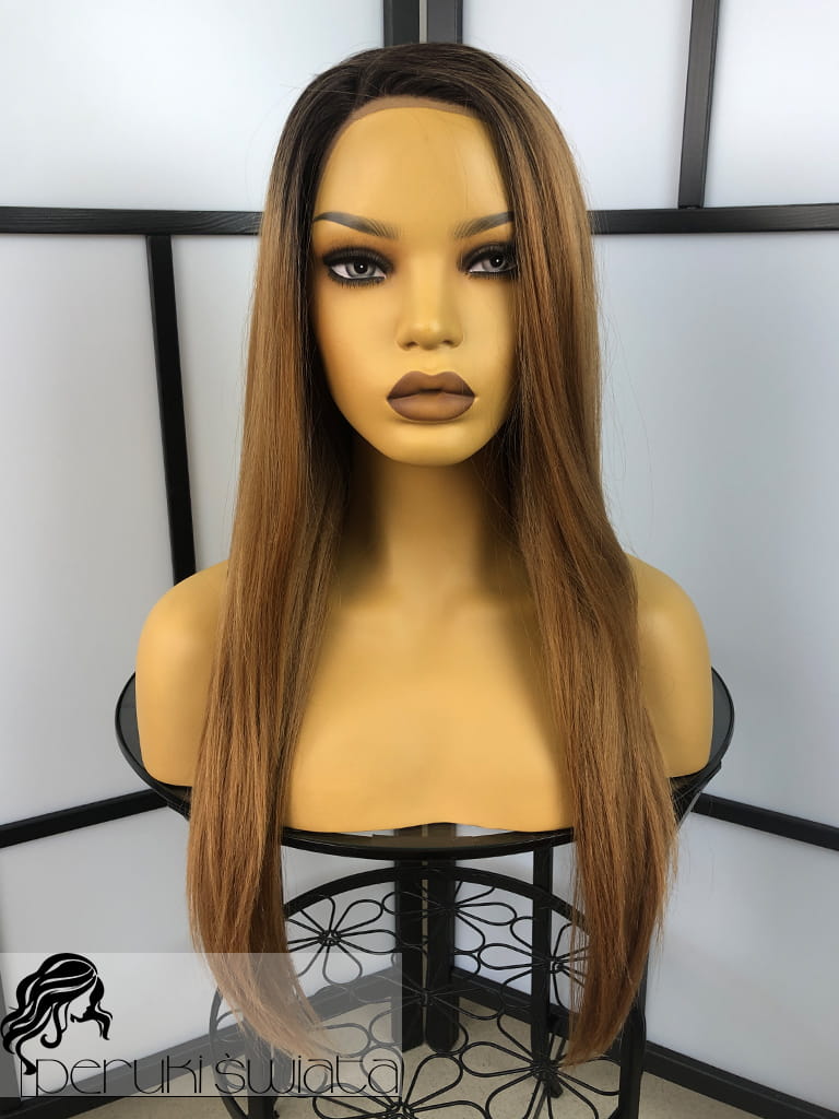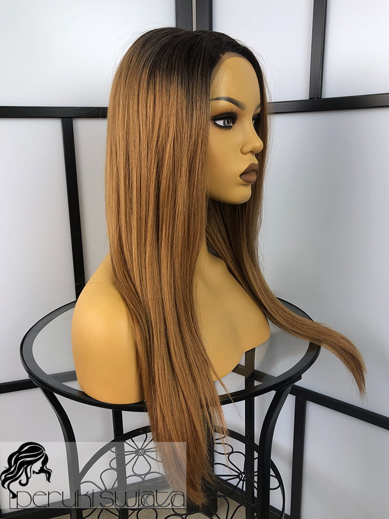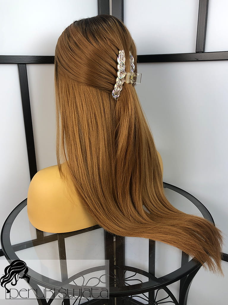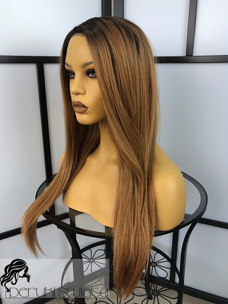 Peruka syntetyczna Jamila, jasny bursztynowy brąz na odroście