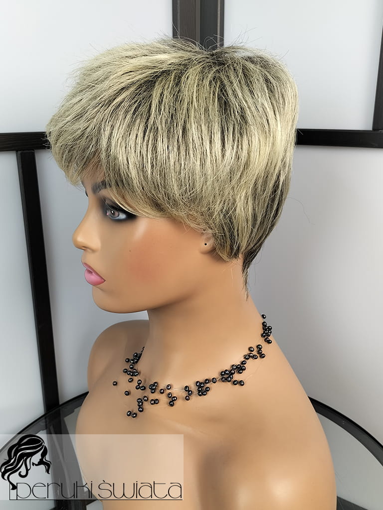 Peruka syntetyczna Janie, kanekalon termoplastyczny, kolor: jasny blond na ciemnym odroście