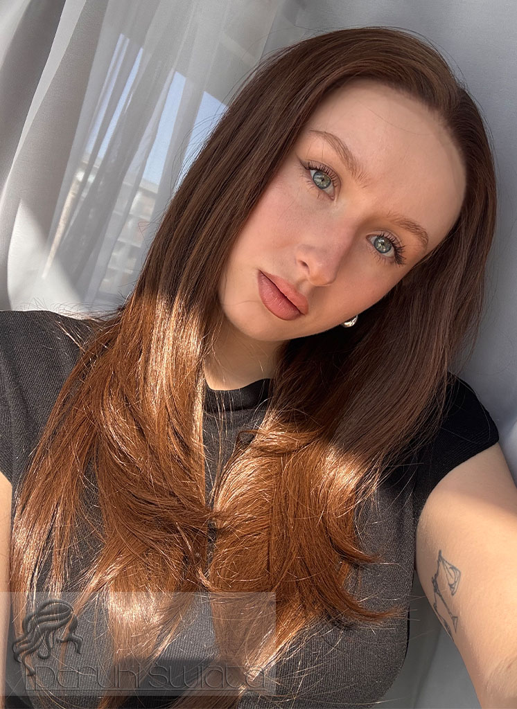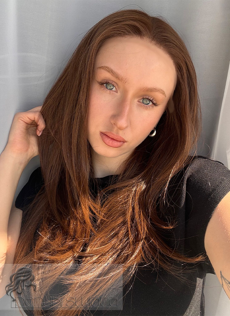 Czepek typu: full lace front (możliwość dowolnego zaczesania przedziałka w obrębie siateczki, podcięcia grzywki, efekt wyrastania włosów z głowy, rozmyta linia przednia peruki)