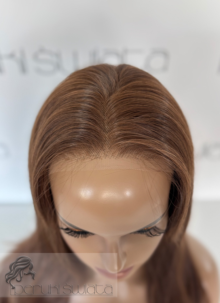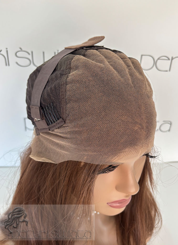 Peruka syntetyczna Judith, czepek typu: full lace, kanekalon termoplastyczny, jasny ciepły brąz