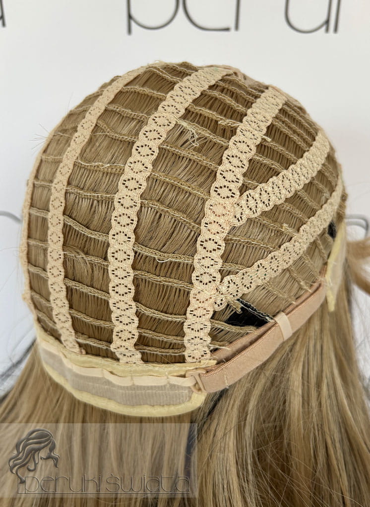 Peruka syntetyczna Juniper, kanekalon termoplastyczny, pszeniczny blond nr 24B z pasemkami od wewnątrz