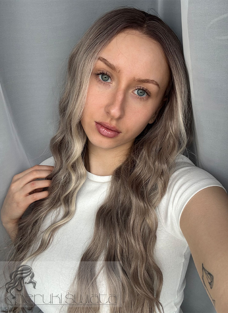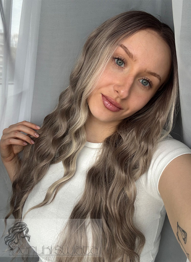 Peruka syntetyczna Karnilla, fale, mix słowiańskich blondów na odroście