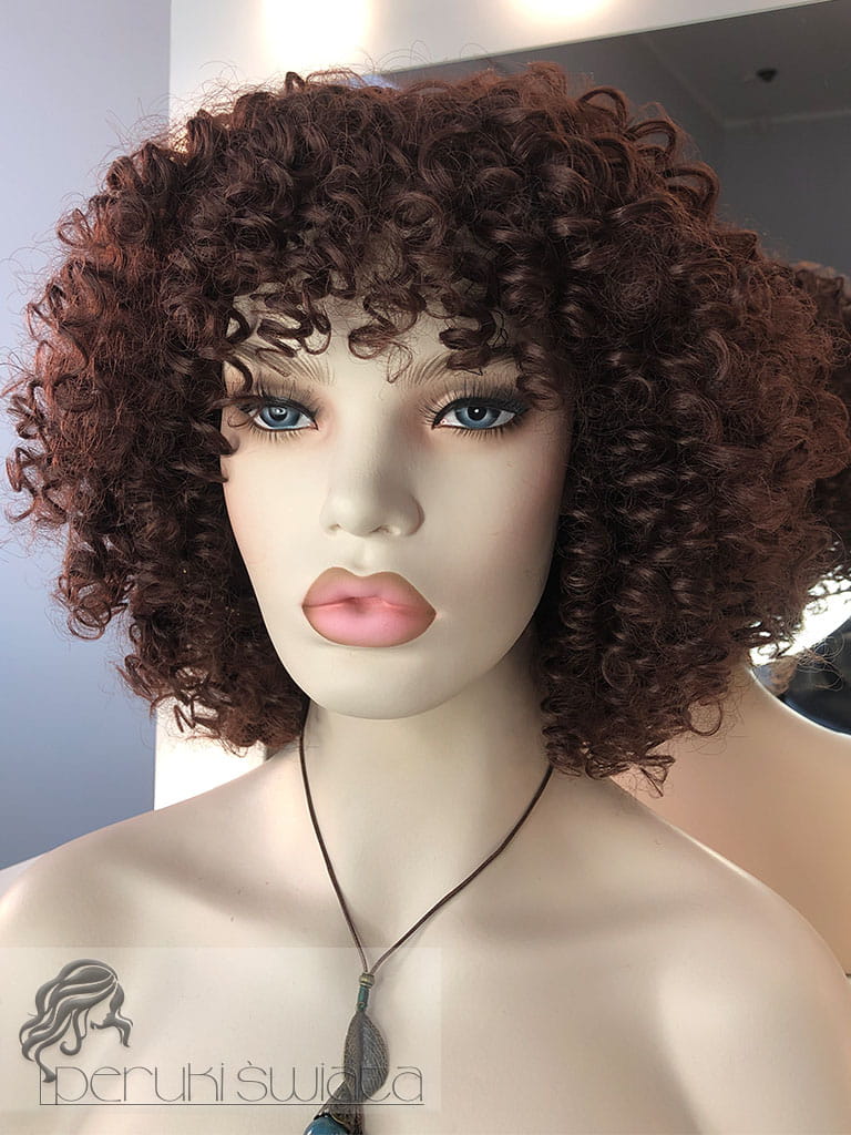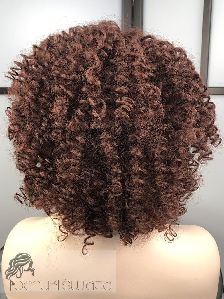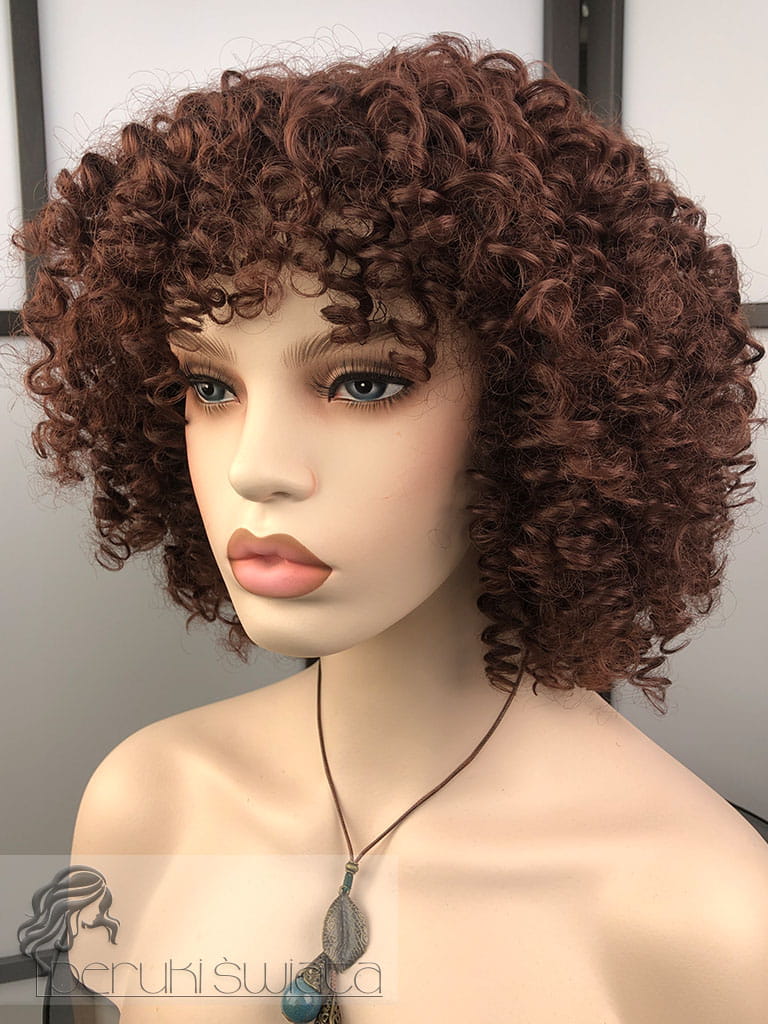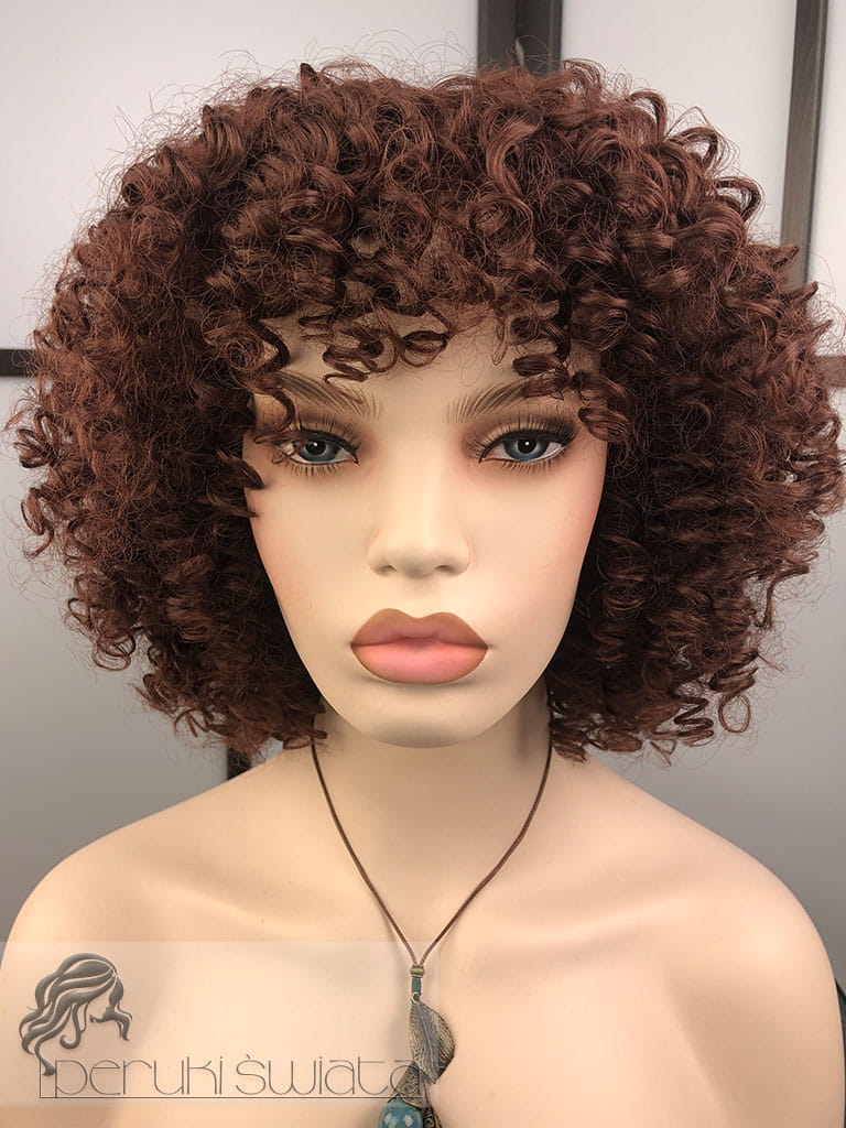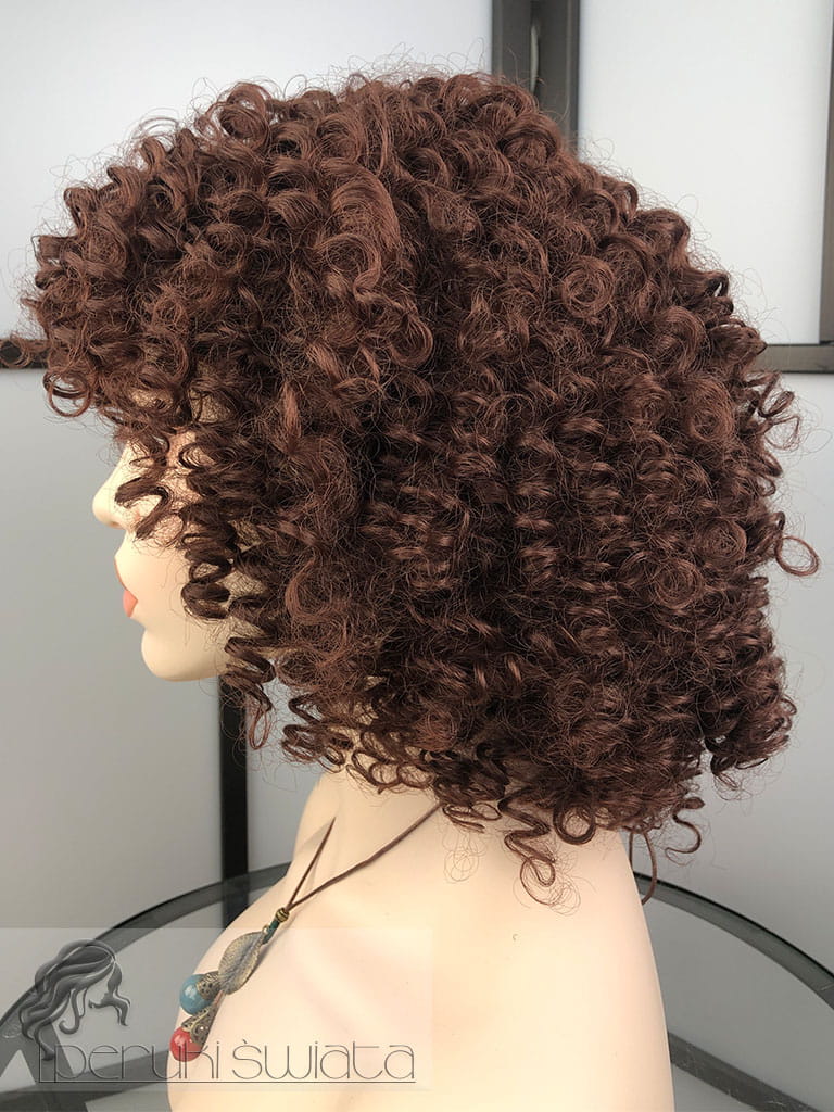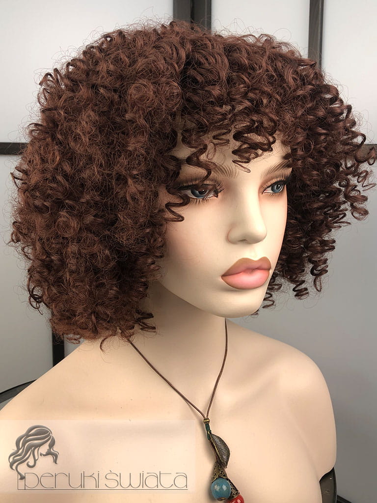 Peruka syntetyczna Kinga, afroloki, kolor: ciepły brąz (kasztan)