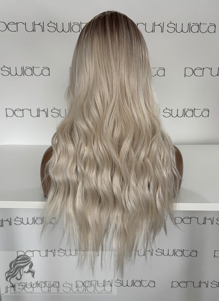 Peruka syntetyczna Anika, czepek typu: full lace, kanekalon termoplastyczny, jasny blond z poświatą białego blondu na subtelnym odroście
