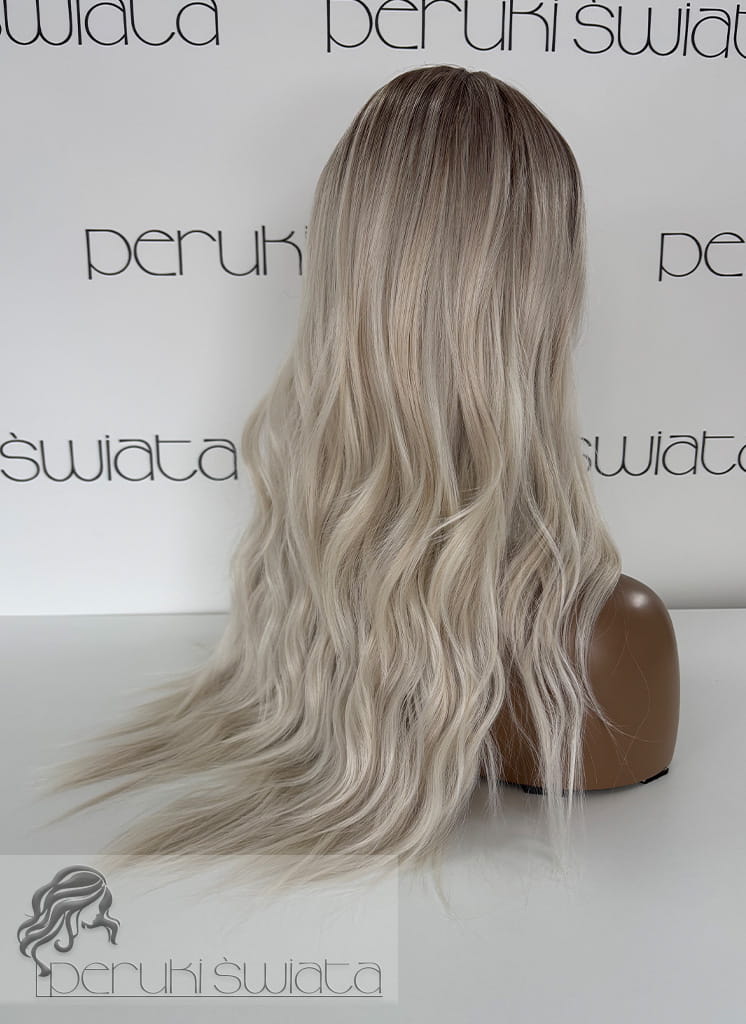 Peruka syntetyczna, kanekalon termoplastyczny, fale, kolor: mix biały blond i piaskowy blond na odroście w kolorze popielatego brązu (24B/613A/6A)