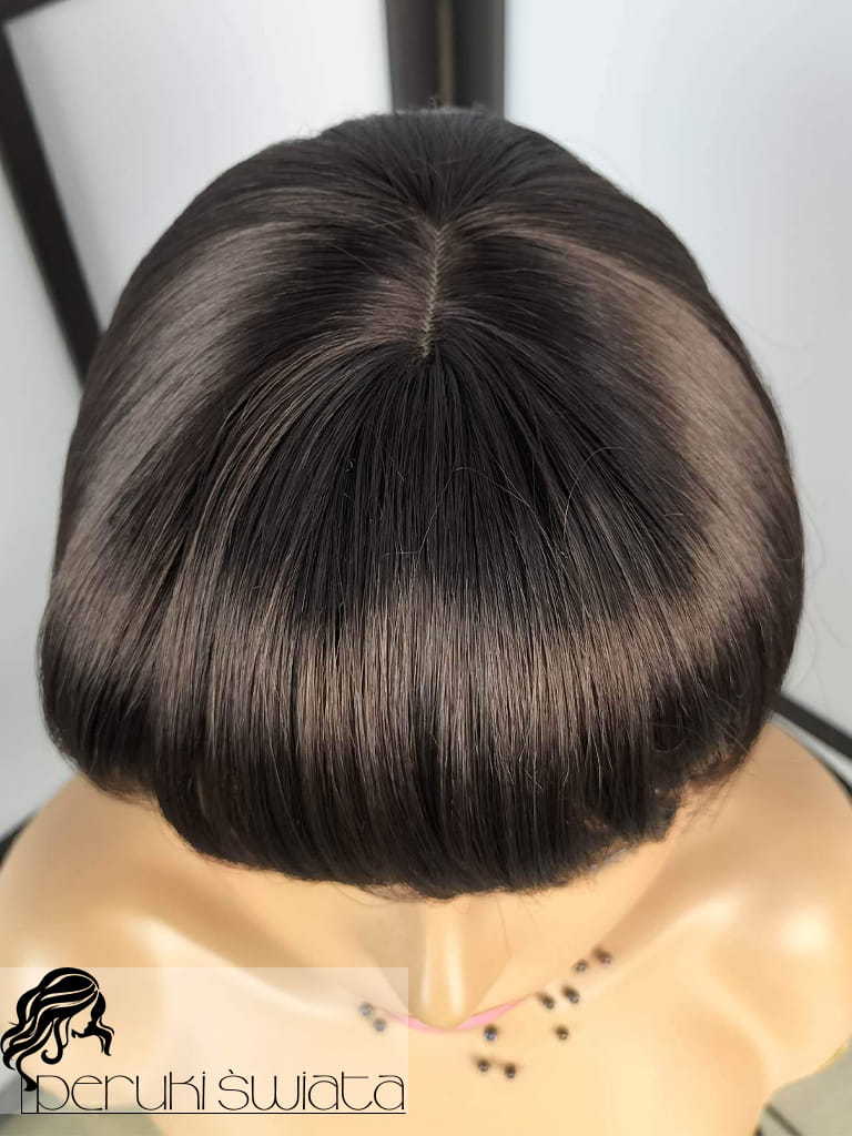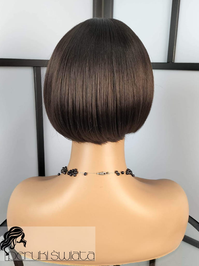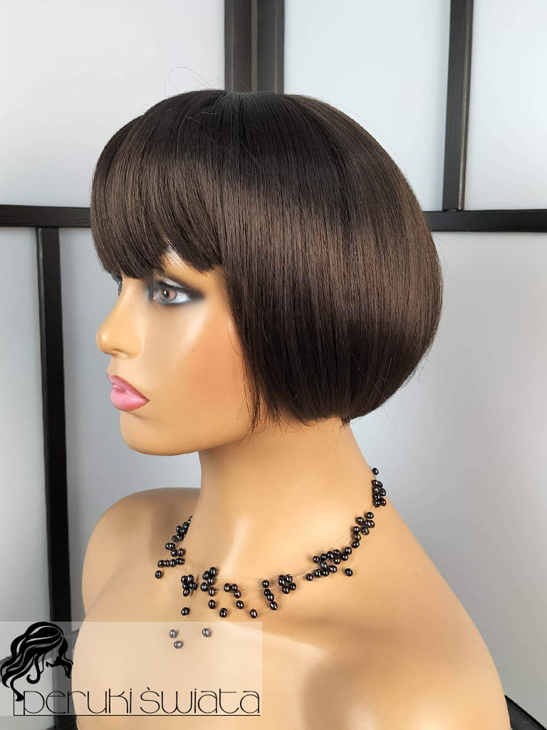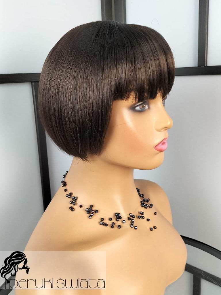 Peruka syntetyczna Kornelia, bob z grzywką, kolor: ciemny brąz