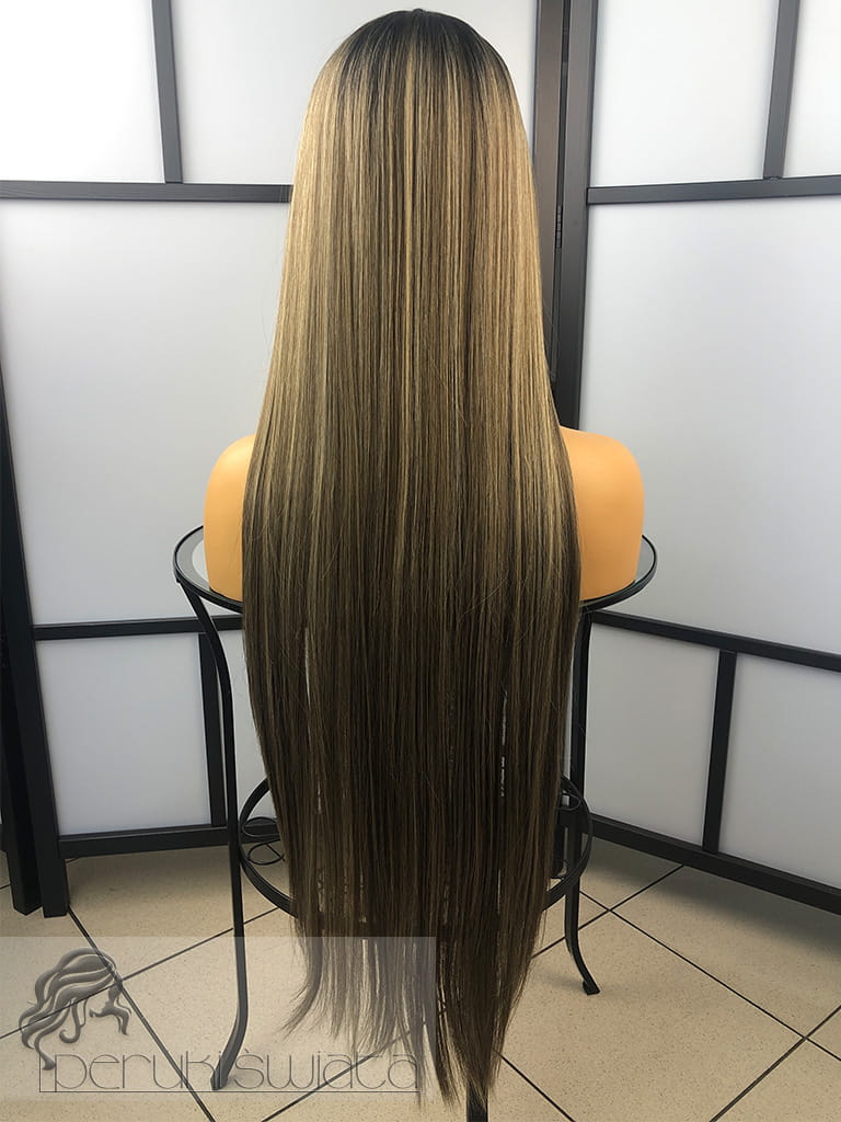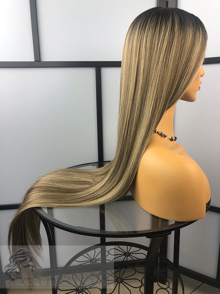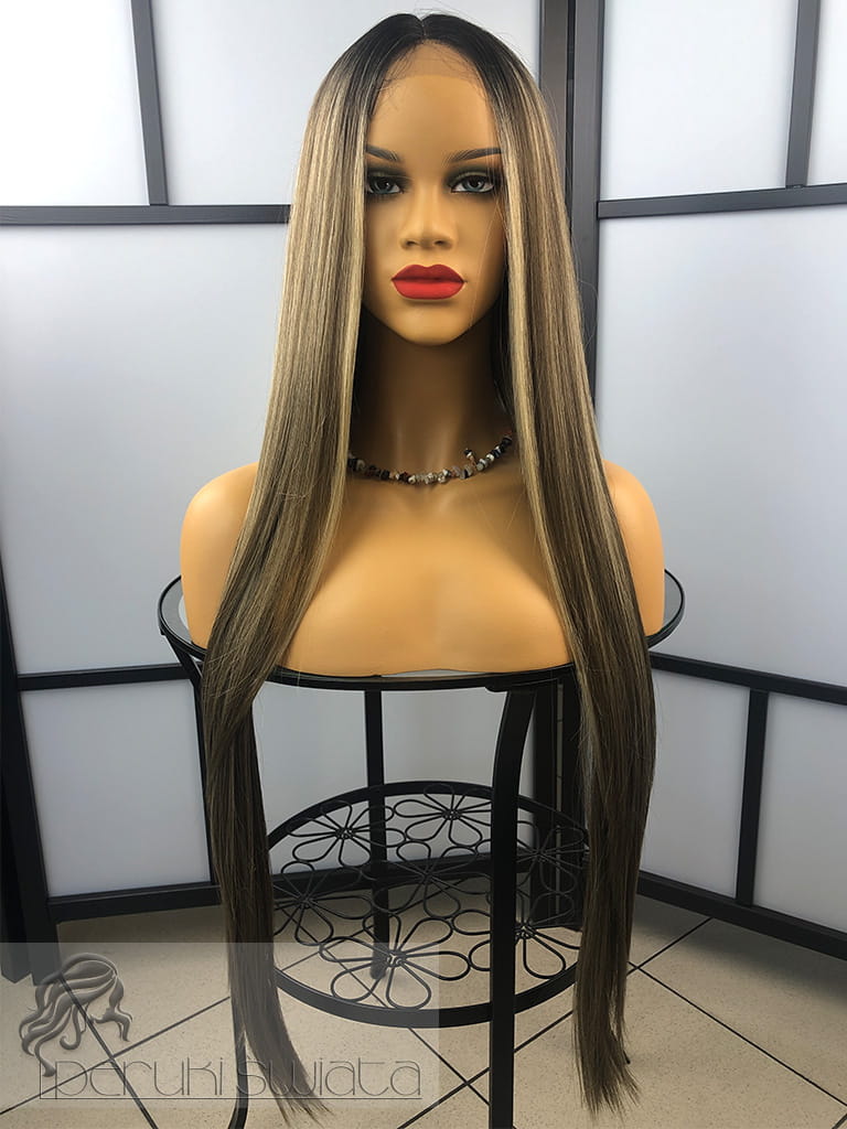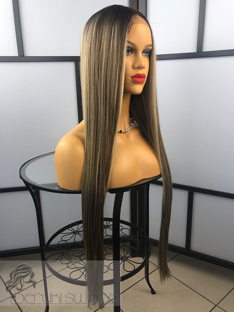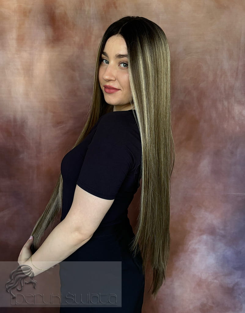 Kolor: t4/9/24, air touch mix blondów, ciemny brąz odrost z refleksami, dostępna też w czerni