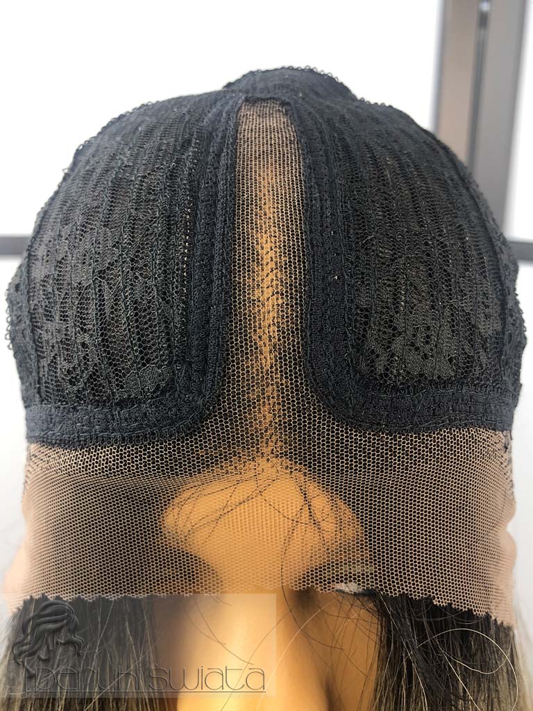 Czepek typu lace front (efekt wyrastania włosów z głowy, wypłaszczony przód peruki "stapia" się ze skalpem)