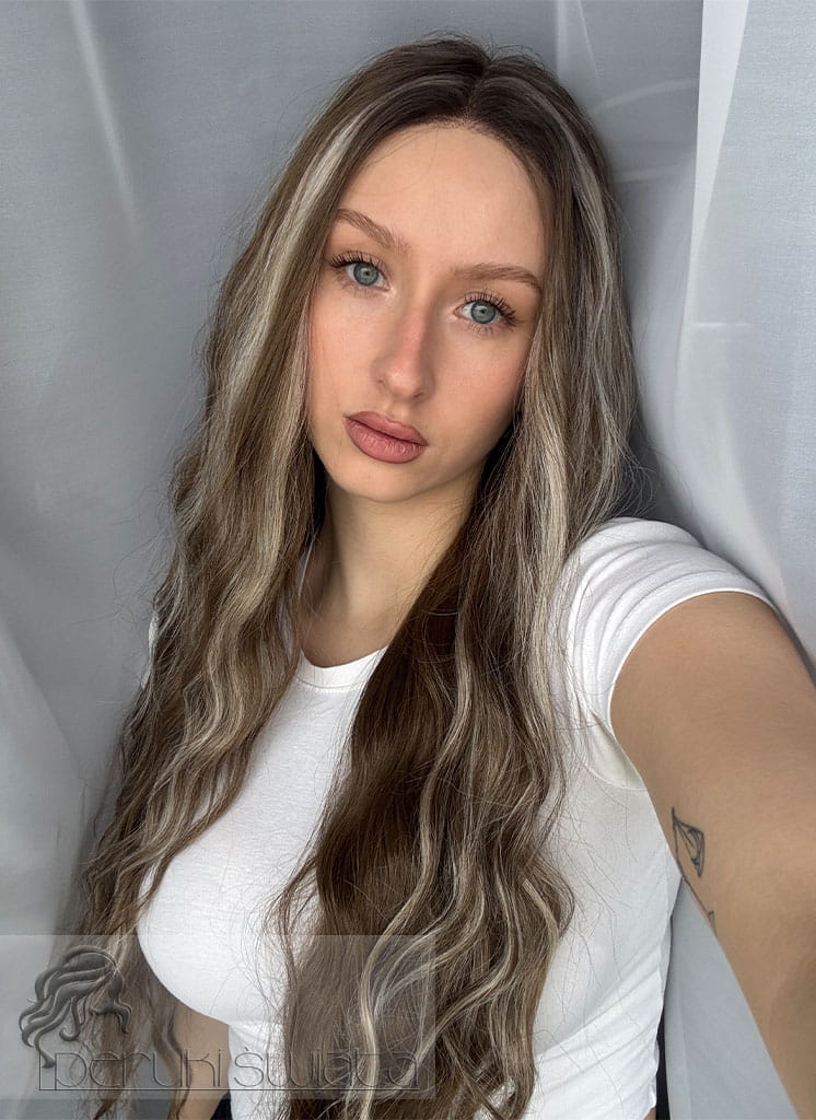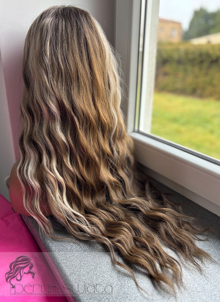 Kolor: ciemny, ciepły blond z pasemkami jasnego blondu