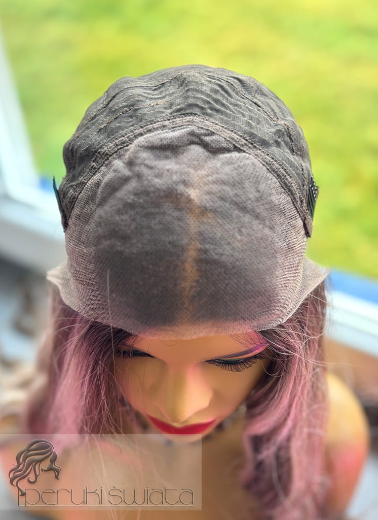Czepek typu: full lace front (możliwość dowolnego zaczesania przedziałka w obrębie siateczki, podcięcia grzywki, efekt wyrastania włosów z głowy, rozmyta linia przednia peruki)