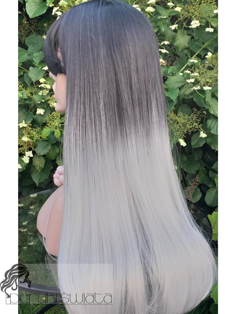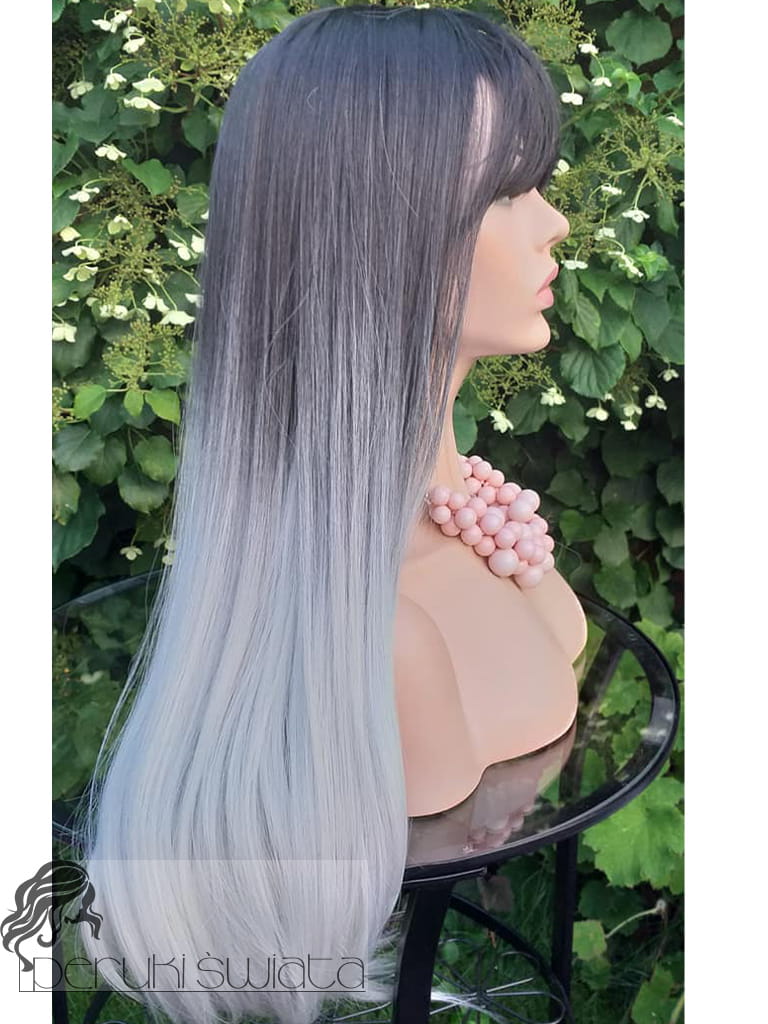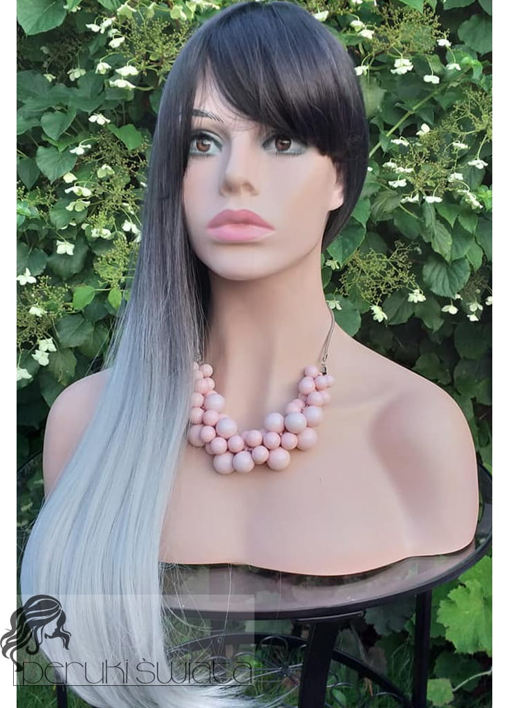 Peruka syntetyczna Lorenza, kanekalon termoplastyczny, kolor: ombre szarość z czernią