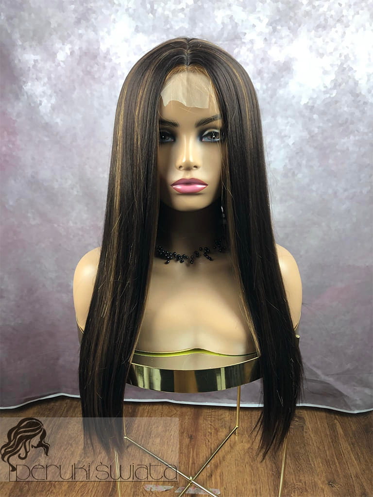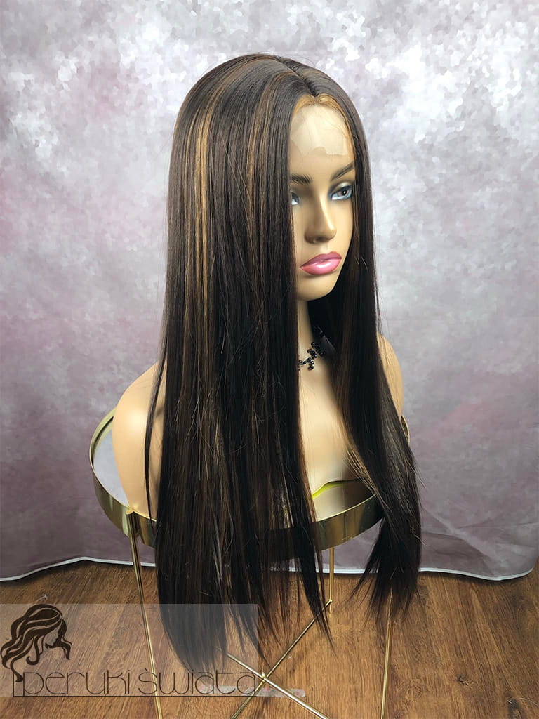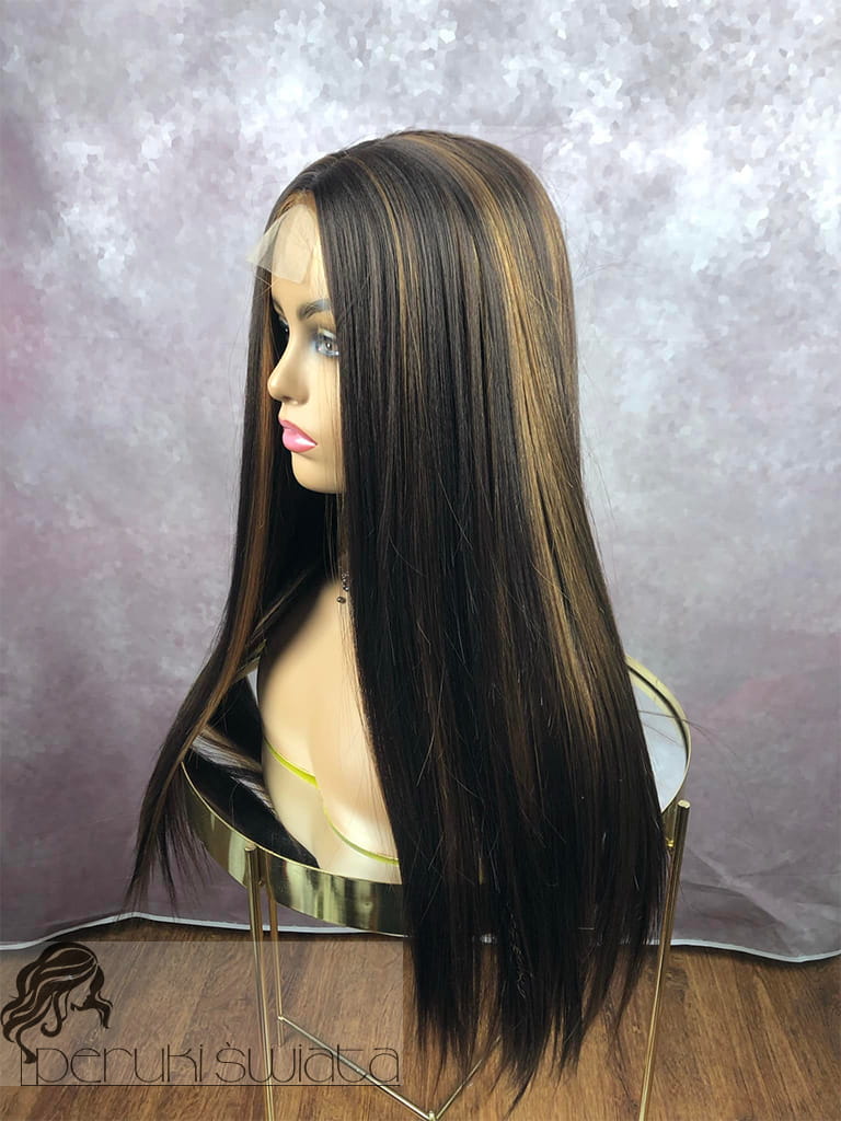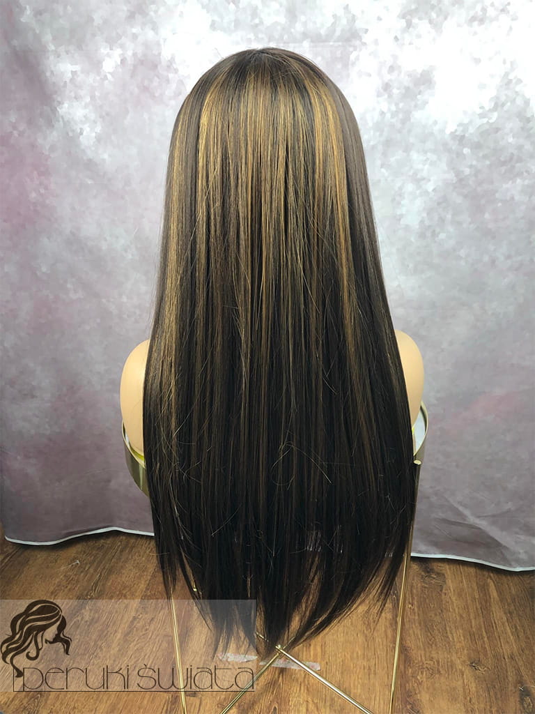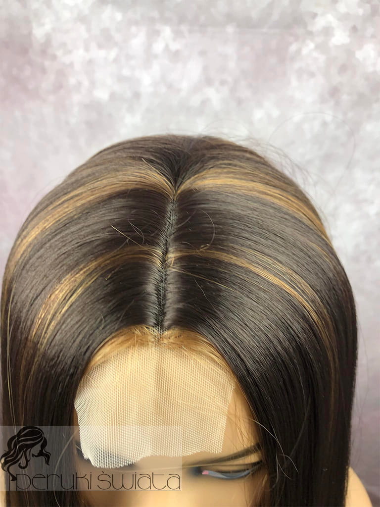 Peruka syntetyczna Luna, kanekalon termoplastyczny, kolor: brąz ze złocistymi pasemkami