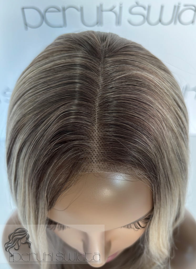 Kolor: mix jasnego, chłodnego blondu z ciemnym, ciepłym blondem na odroście w kolorze ciemnego, chłodnego blondu