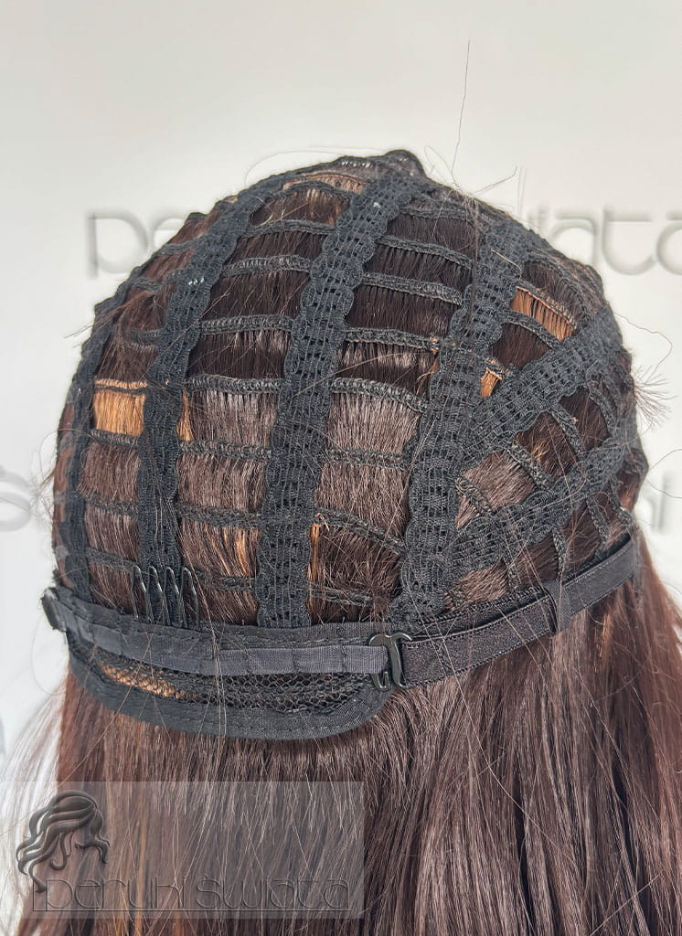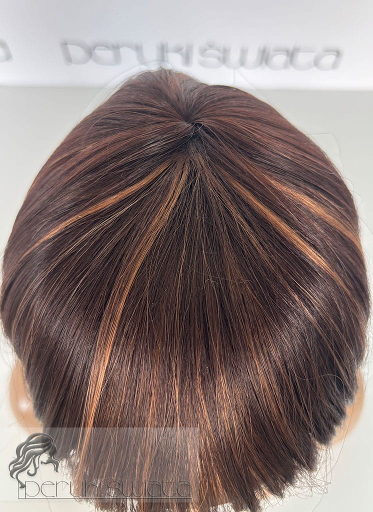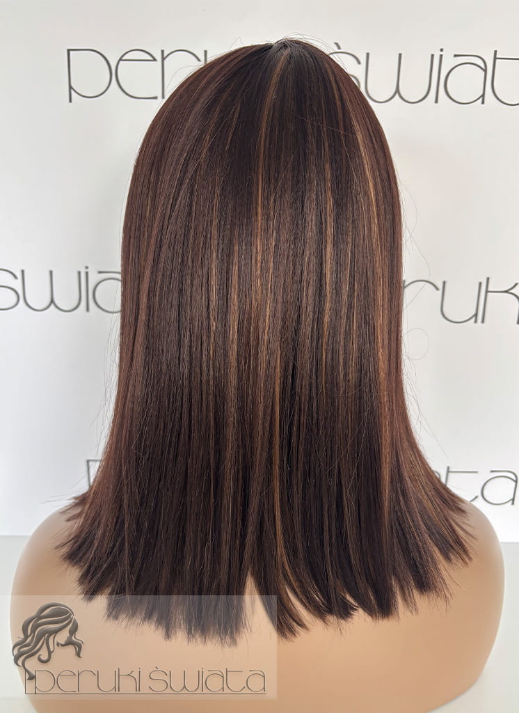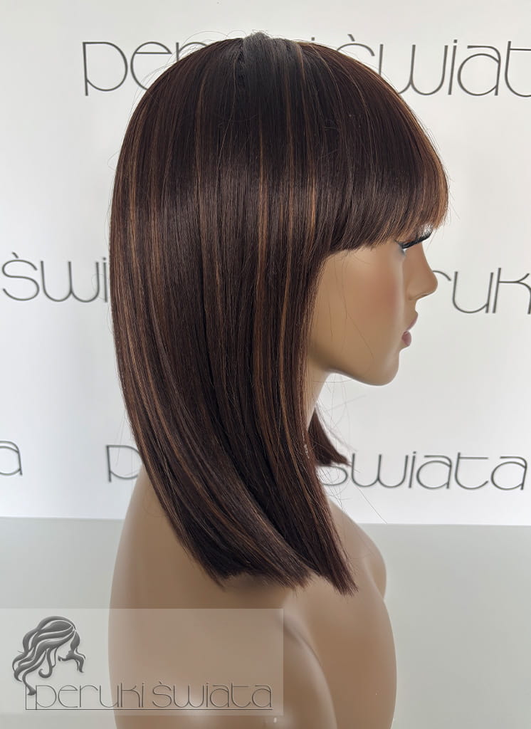 Peruka syntetyczna Marella, long bob z grzywką, kolor: brąz z refleksami