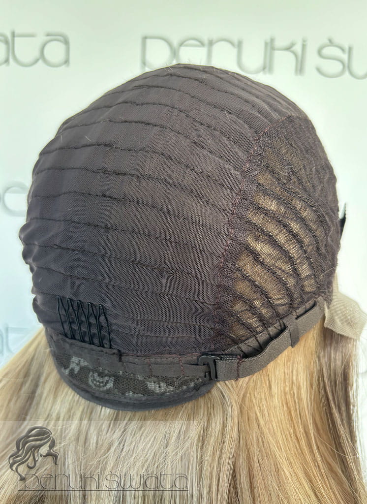 Peruka syntetyczna Mariposa, czepek typu: full lace, kanekalon termoplastyczny, ciepły, słowiański blond na subtelnym odroście