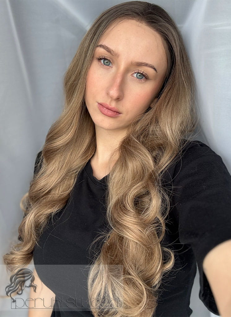 Czepek typu: full lace front (możliwość dowolnego zaczesania przedziałka w obrębie siateczki, podcięcia grzywki, efekt wyrastania włosów z głowy, rozmyta linia przednia peruki)