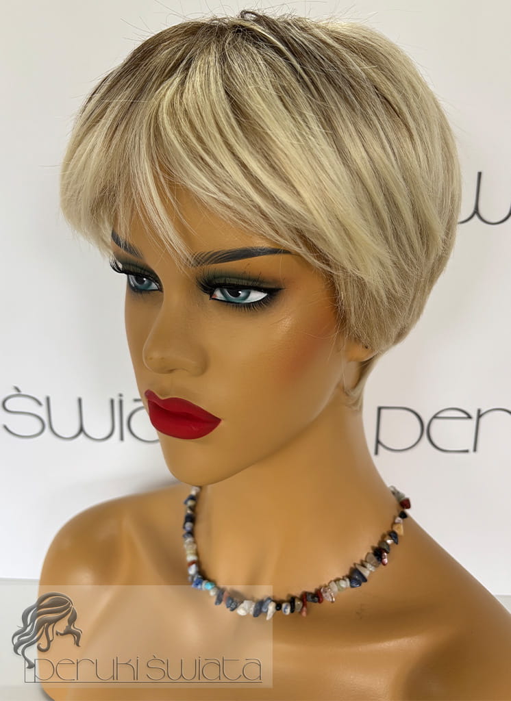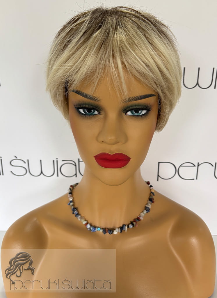 Peruka syntetyczna Merlin, włosy krótkie, kolor: platynowy blond na odroście