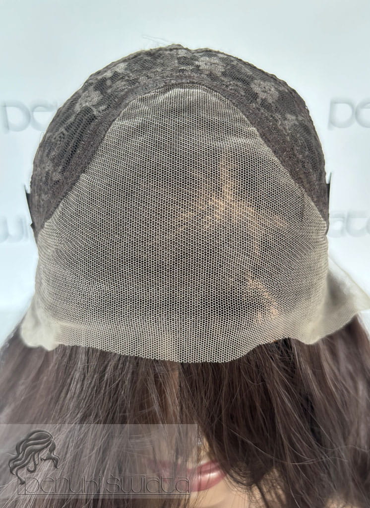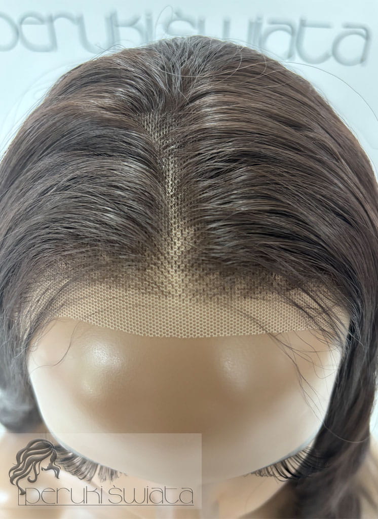 Czepek typu: full lace front (możliwość dowolnego zaczesania przedziałka w obrębie siateczki, podcięcia grzywki, efekt wyrastania włosów z głowy, rozmyta linia przednia peruki)