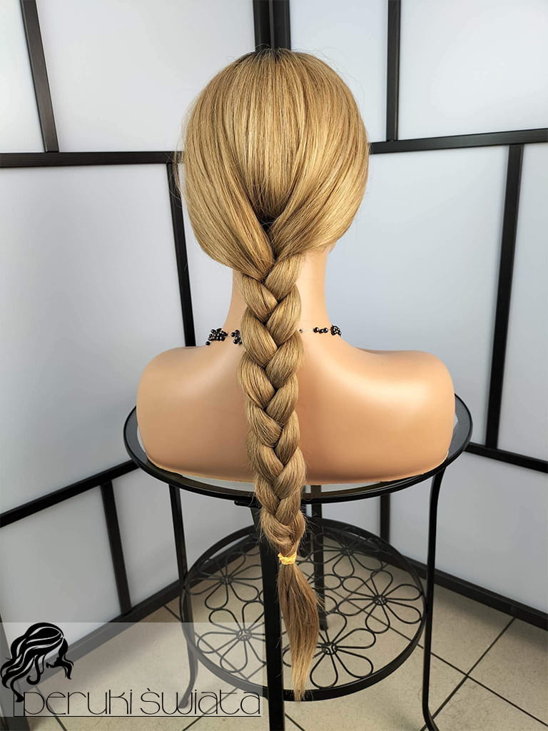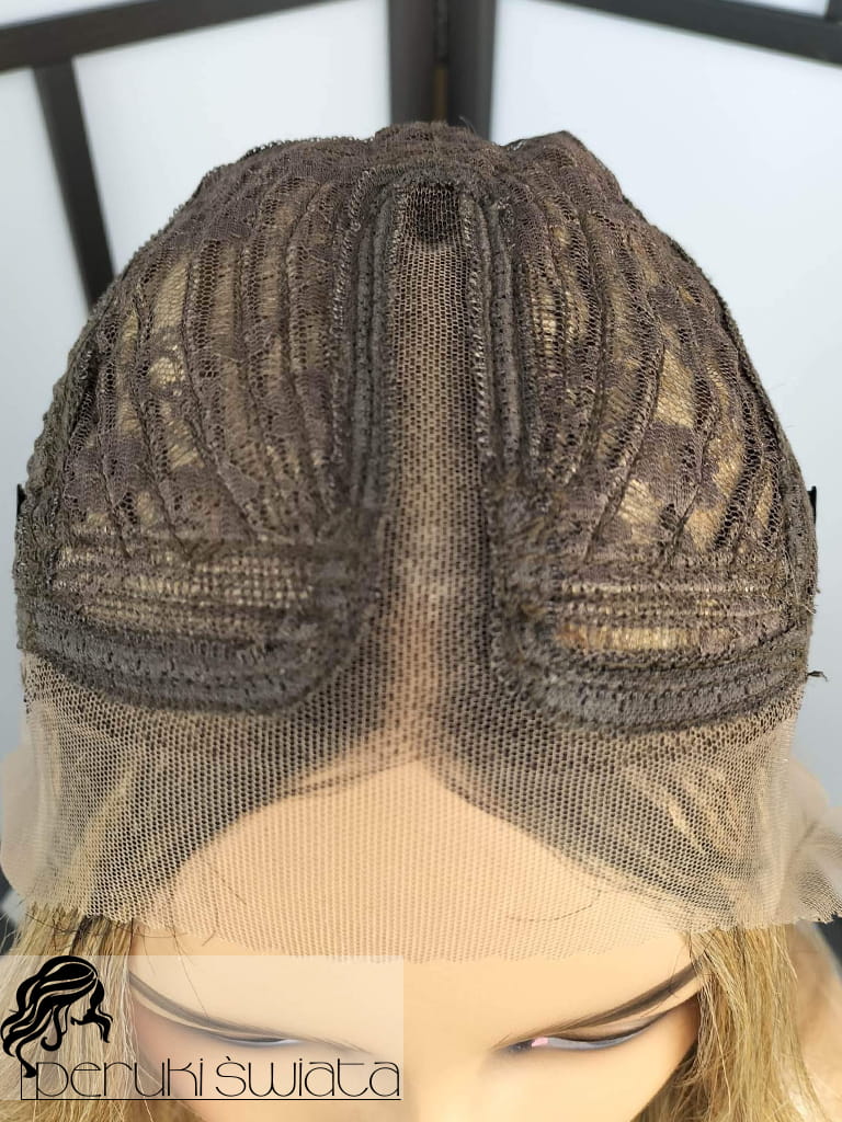 Model Lisa, peruka syntetyczna, monotop, kanekalon, fale, kolor: ciepły słowiański blond na odroście