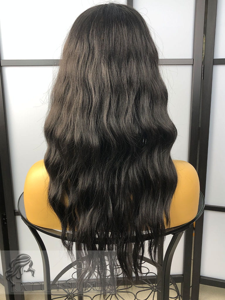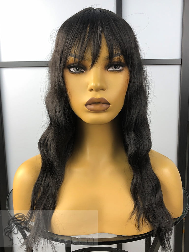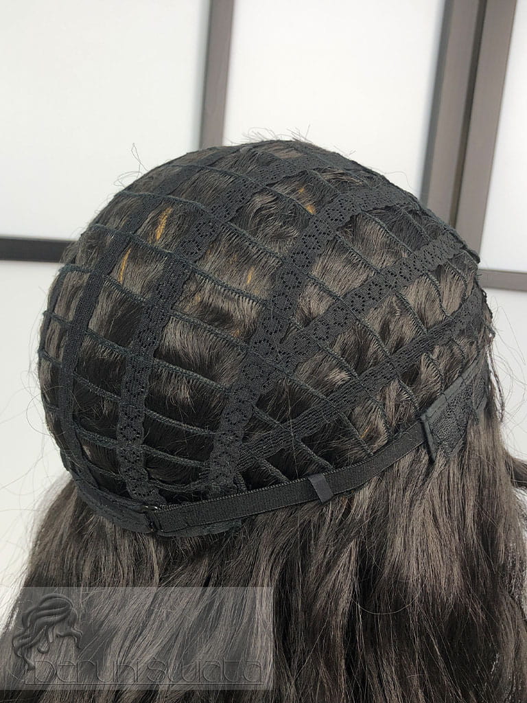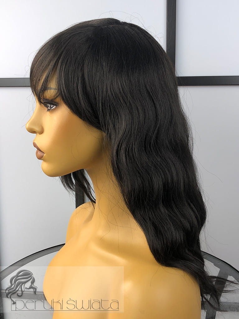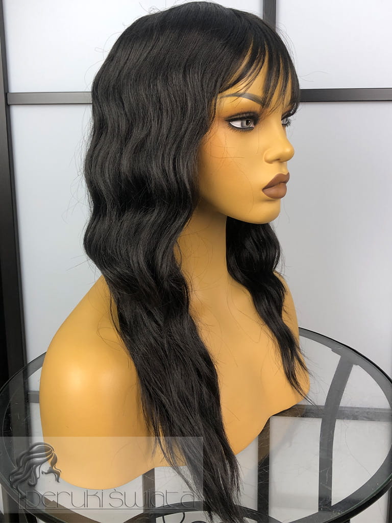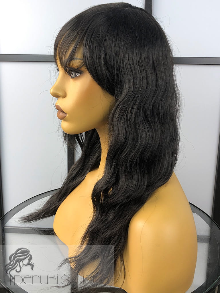 Peruka syntetyczna Mirabelle, long bob, fale, kolor: gorzka czekolada