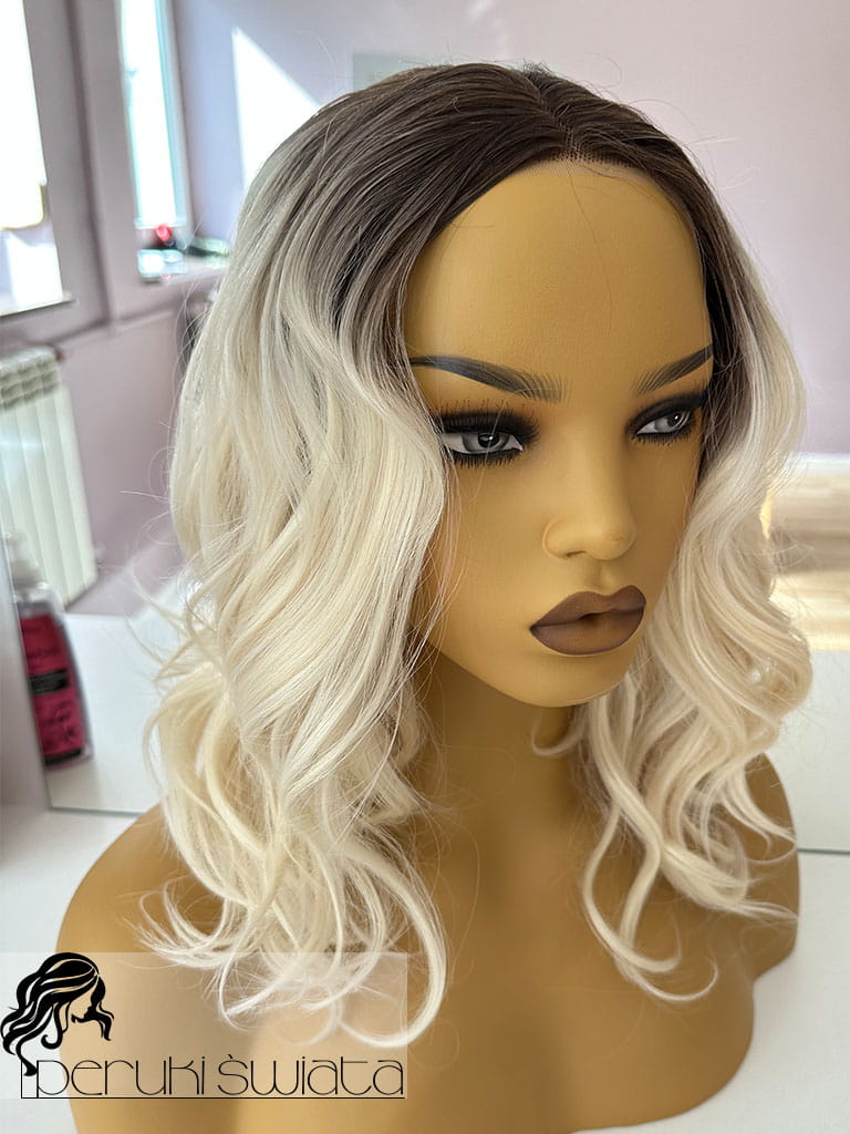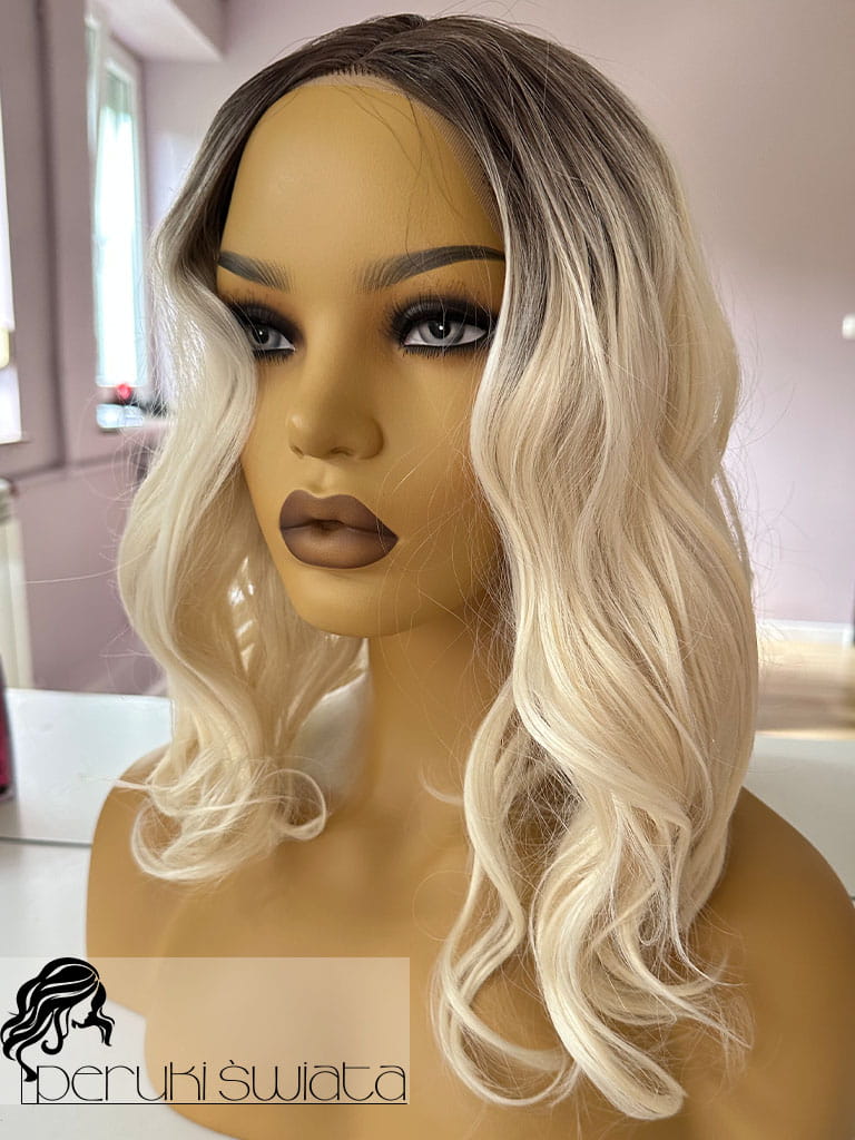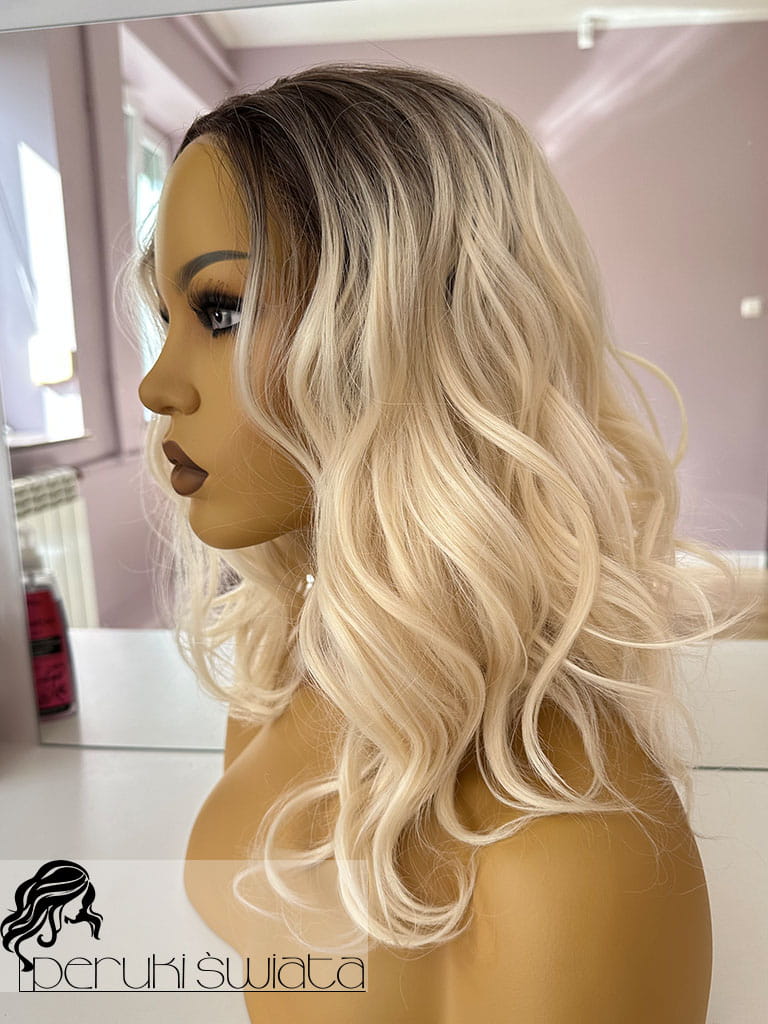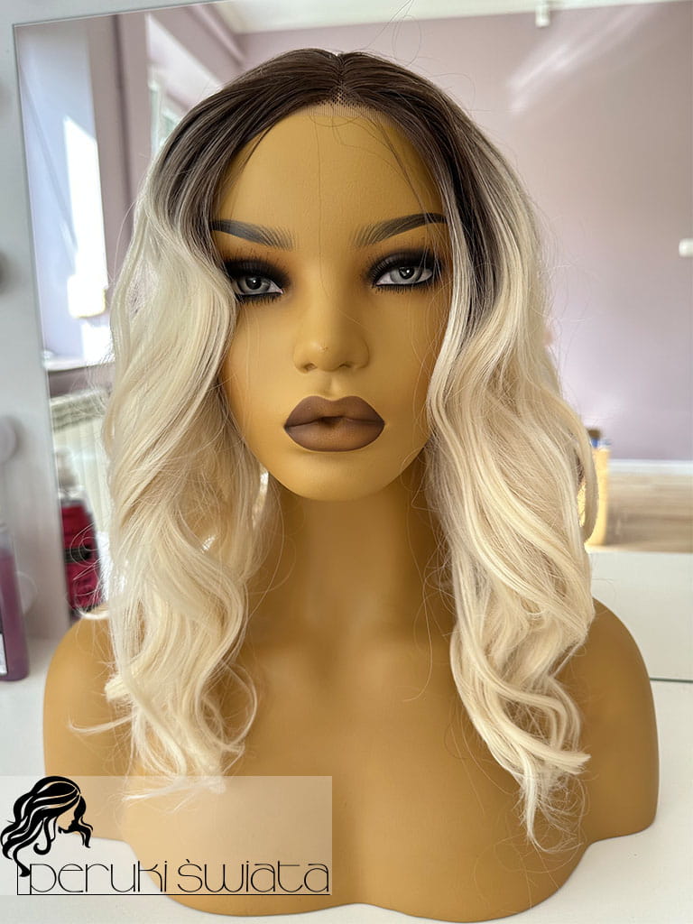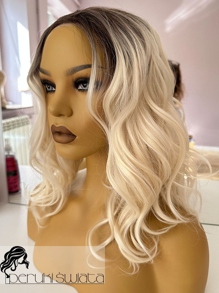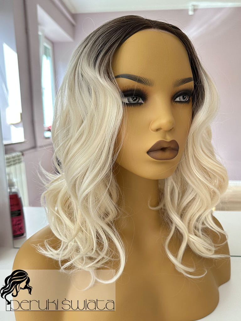 Peruka syntetyczna Mirella , kanekalon termoplastyczny, fale, kolor: platynowy blond na odroście