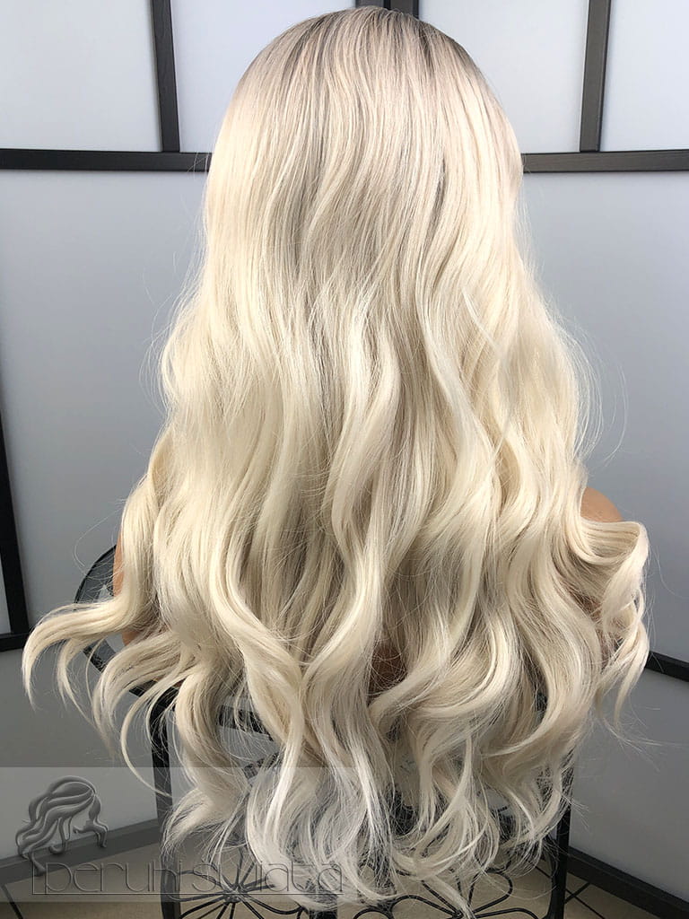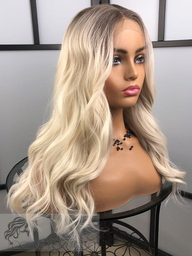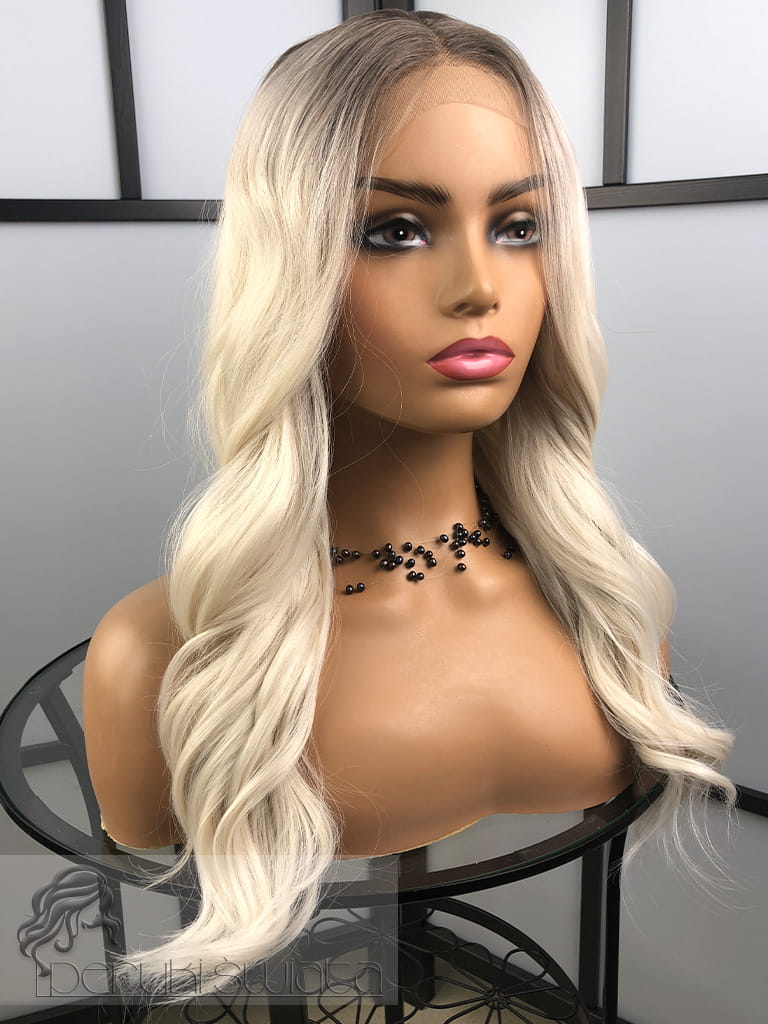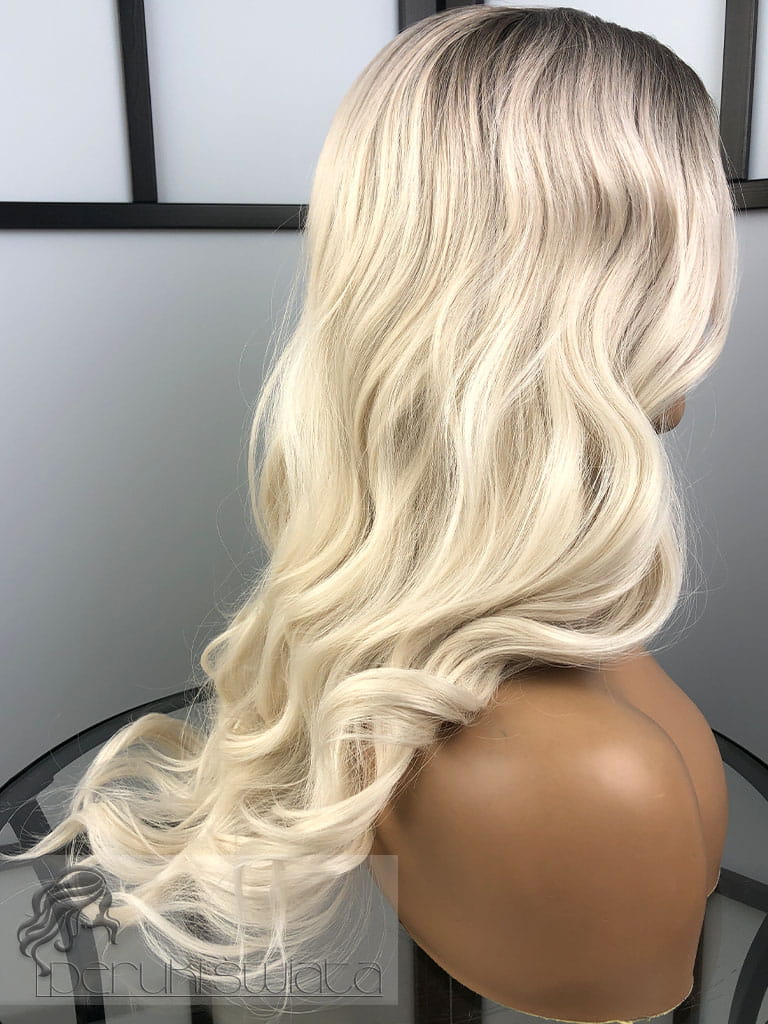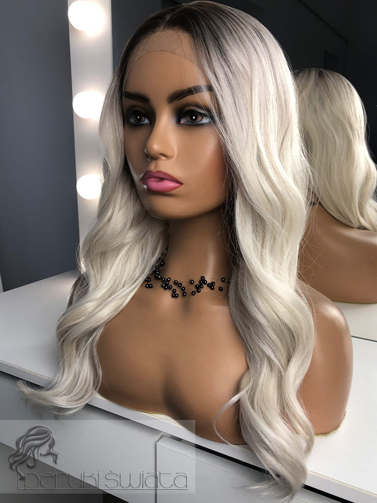 Peruka syntetyczna Monika, kanekalon termoplastyczny, full lace front, platynowy blond na odroście