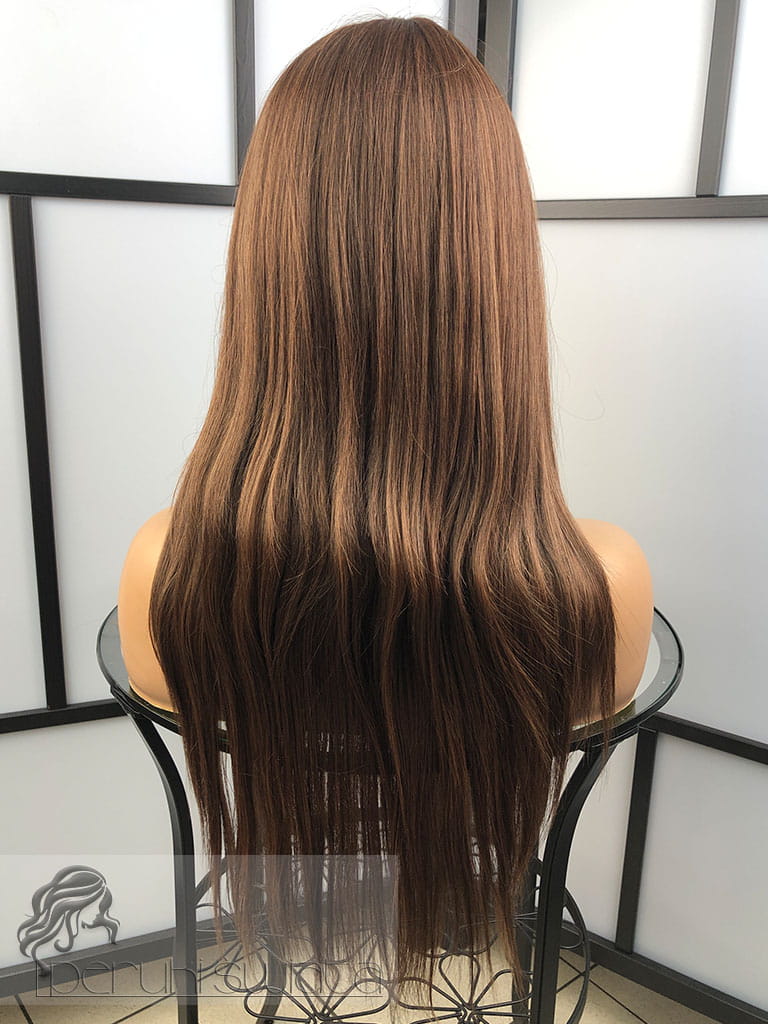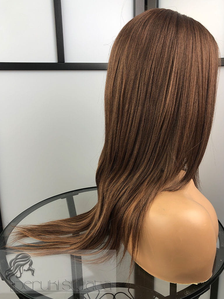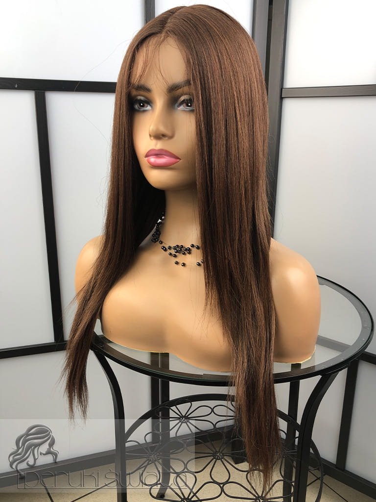 Peruka syntetyczna Nadia, kanekalon japoński, lace front, ciepły brąz z refleksami