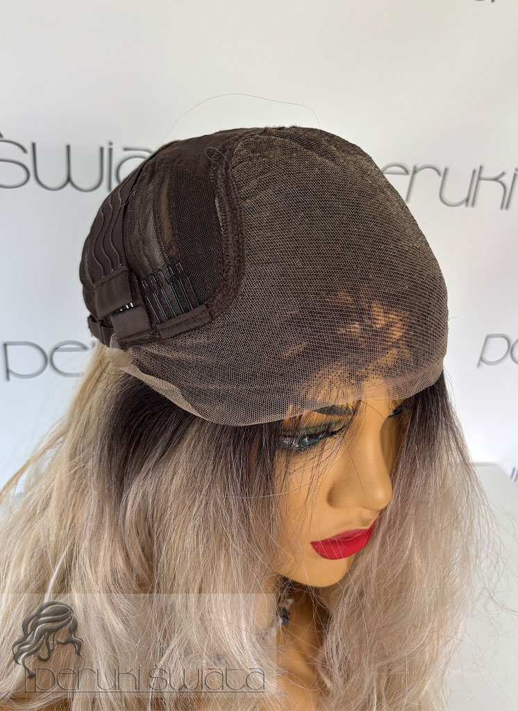 Czepek typu: full lace front (możliwość dowolnego zaczesania przedziałka w obrębie siateczki, podcięcia grzywki, efekt wyrastania włosów z głowy, rozmyta linia przednia peruki)