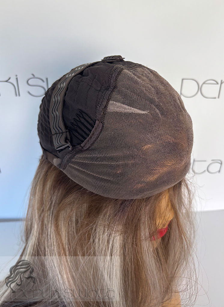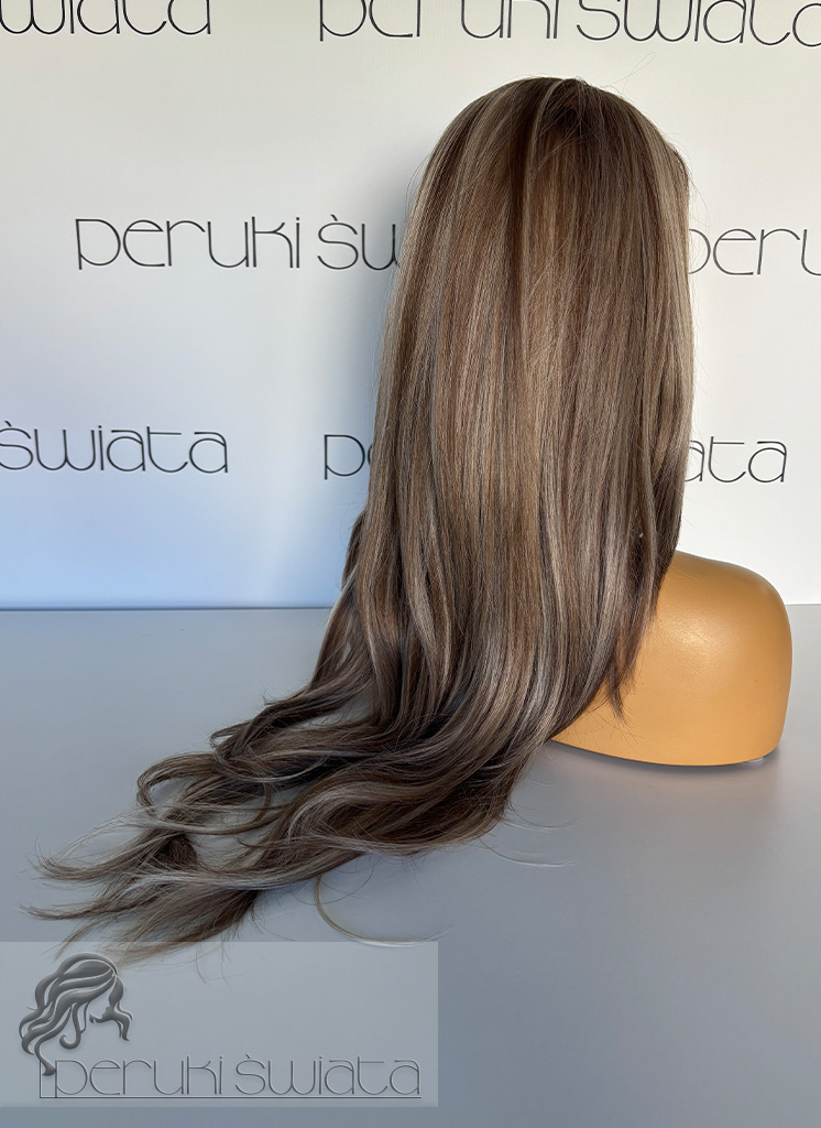 Czepek typu: full lace front (możliwość dowolnego zaczesania przedziałka w obrębie siateczki, podcięcia grzywki, efekt wyrastania włosów z głowy, rozmyta linia przednia peruki)