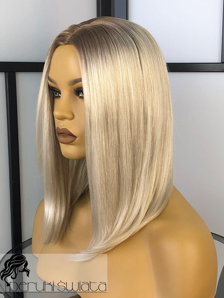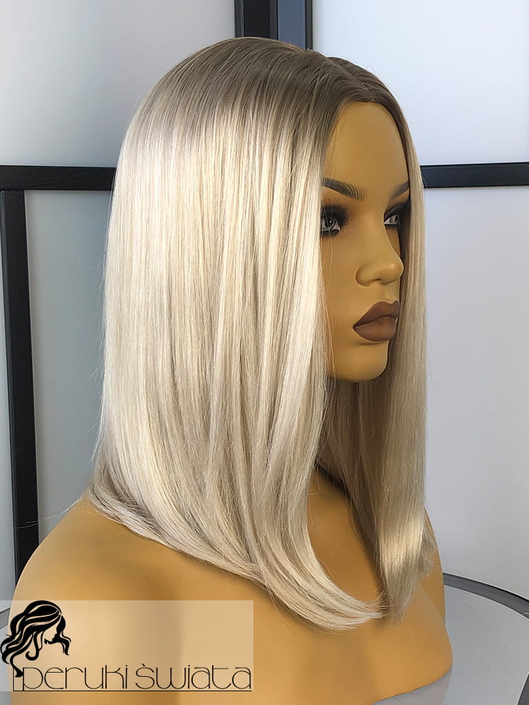 Peruka syntetyczna Nela, kanekalon termoplastyczny, long bob, kolor: jasny słowiański blond na odroście