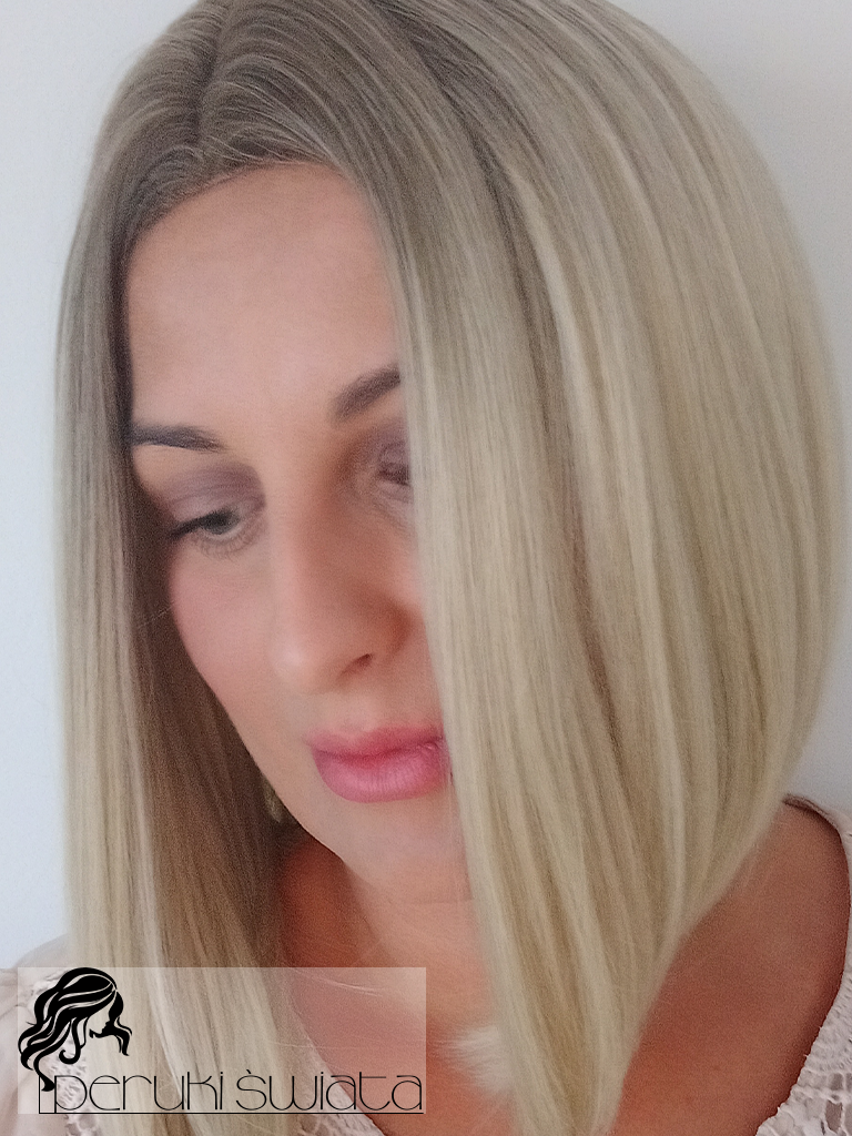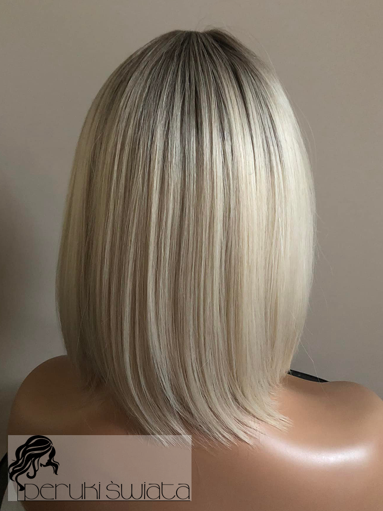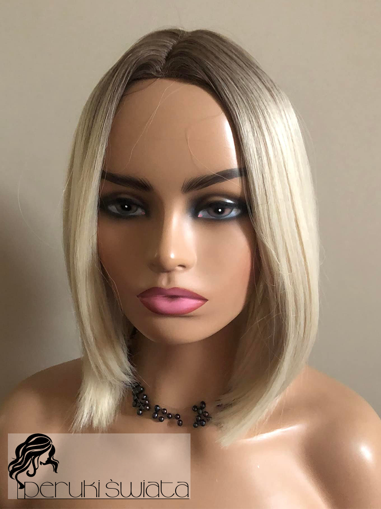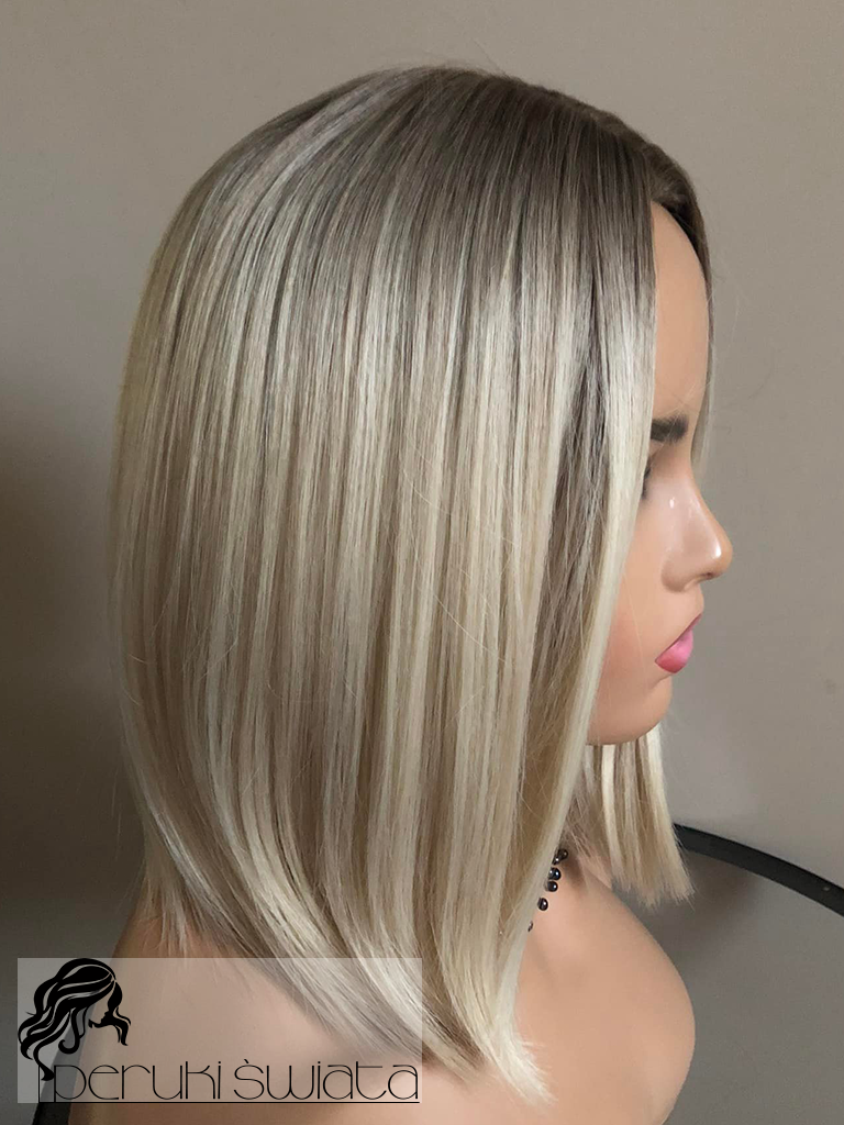 Peruka syntetyczna Nia, long bob, jasny blond na subtelnym odroście, part lace