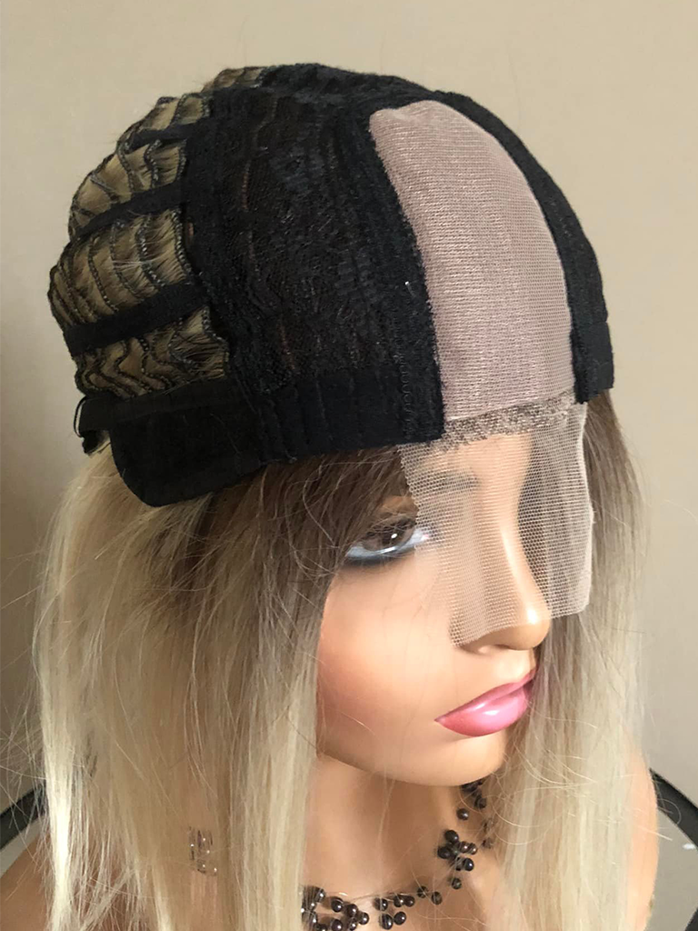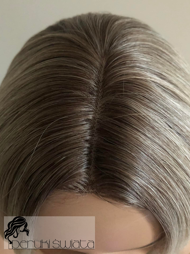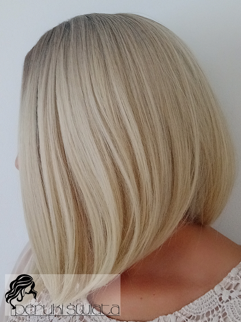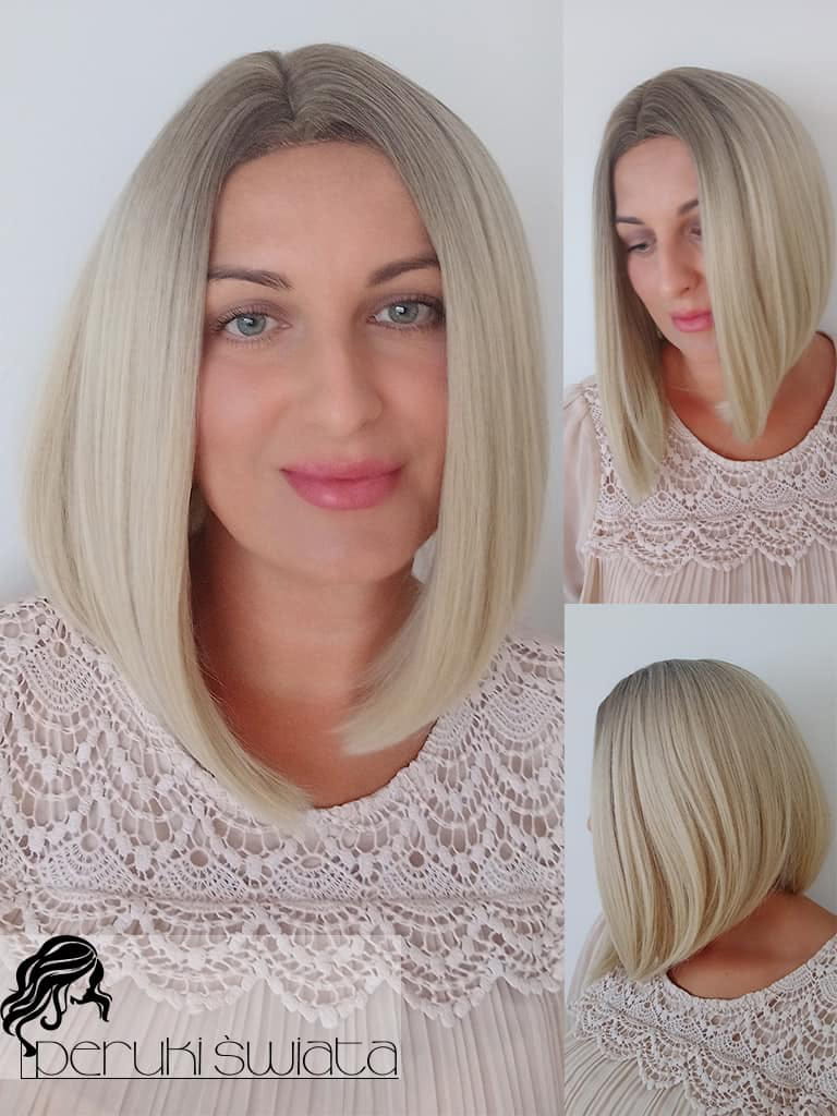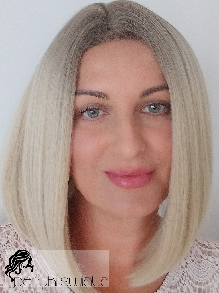 Peruka syntetyczna Nia, long bob, jasny blond na subtelnym odroście, part lace