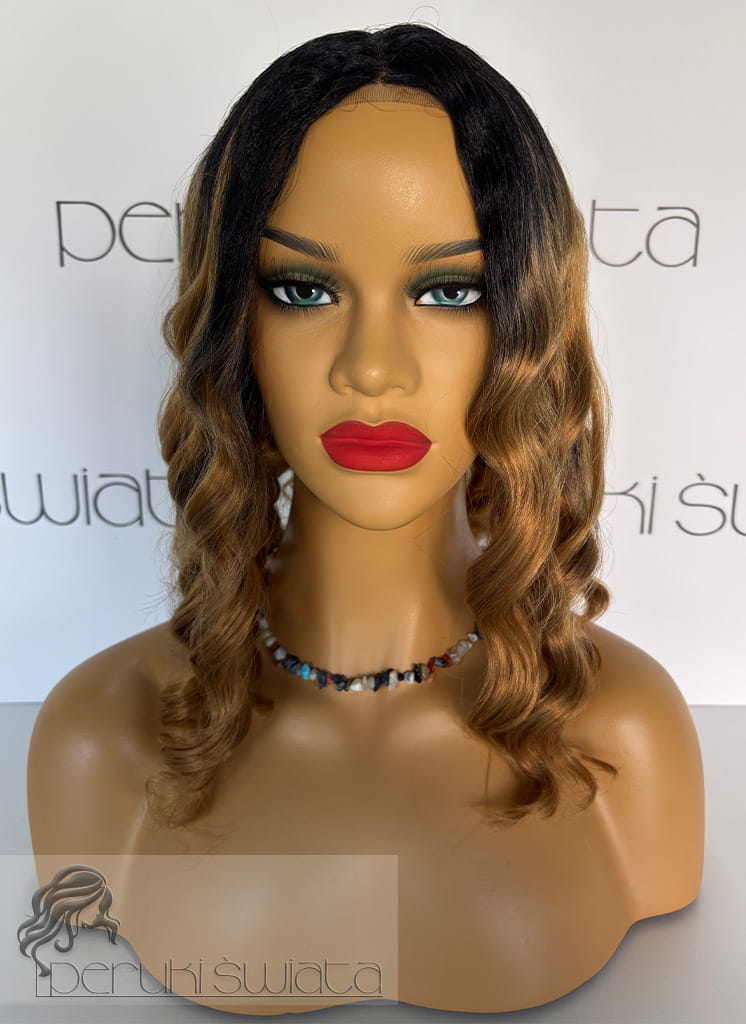 Peruka syntetyczna Nukka, kanekalon, bob, kolor: ombre bursztynowy blond