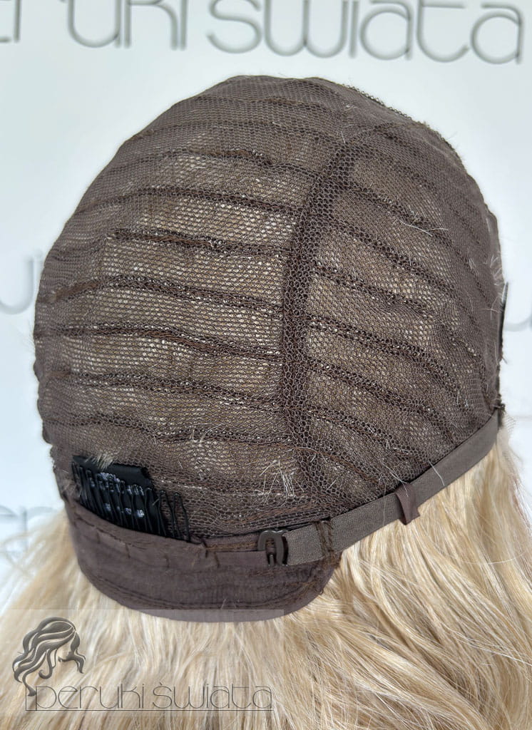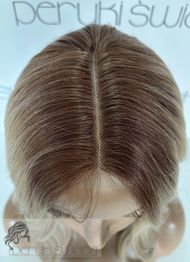 Model Lisa, peruka syntetyczna, monotop, kanekalon, fale, kolor: ciepły słowiański blond na odroście