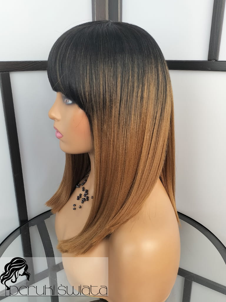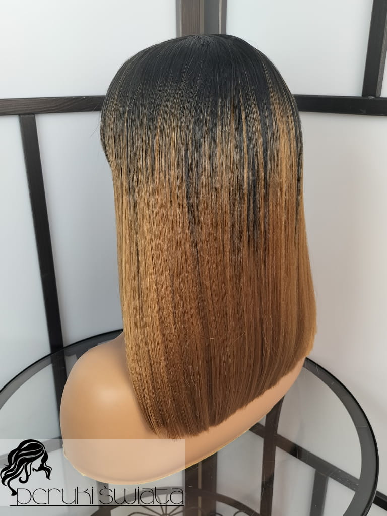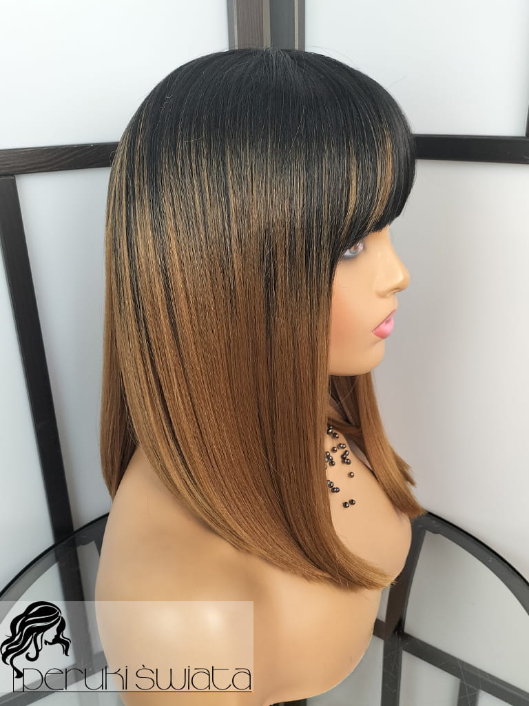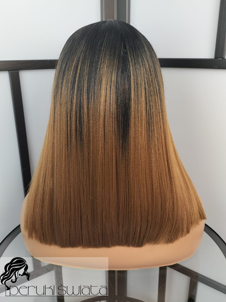 Peruka syntetyczna Ode, kanekalon termoplastyczny, long bob, ombre czerń plus brąz