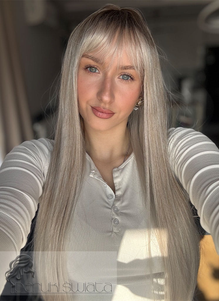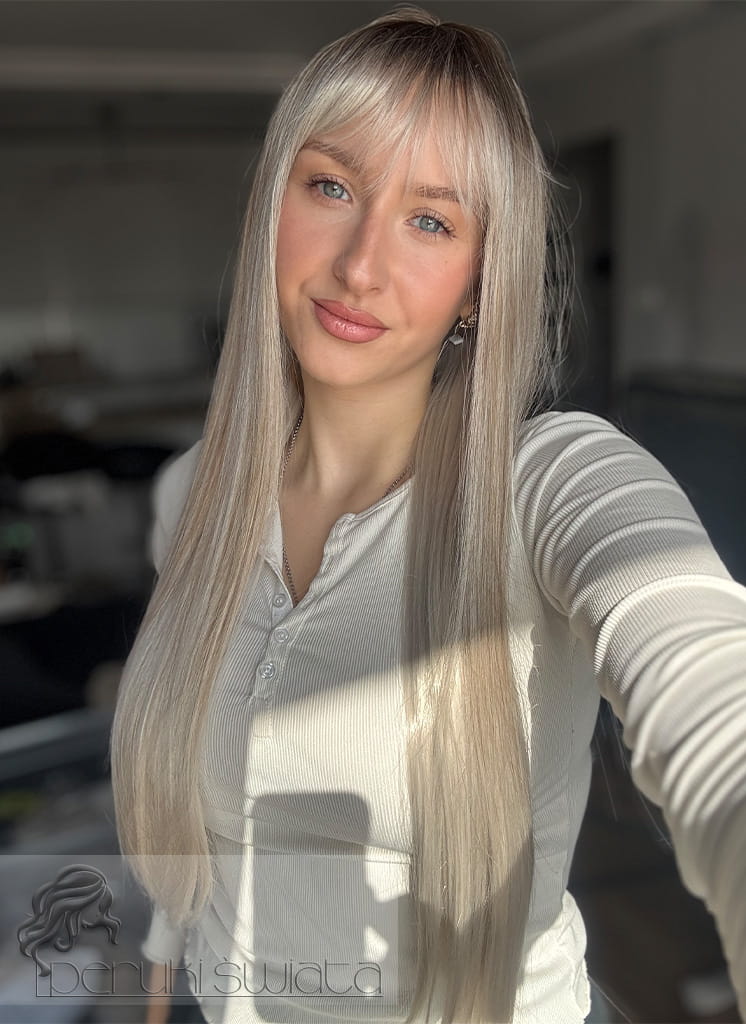 Kolor: platynowy blond z poświatą ciepłego blondu na odroście