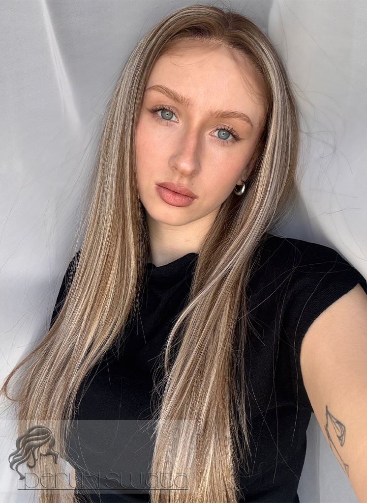 Kolor: średni, ciepły blond z białym blondem
