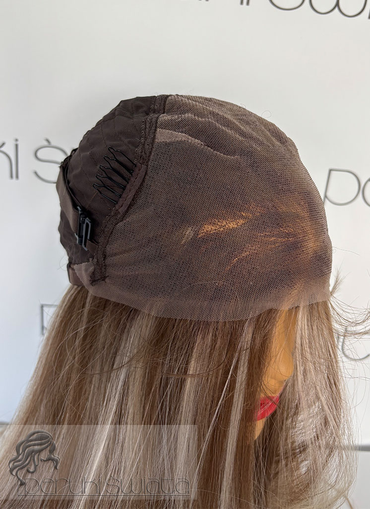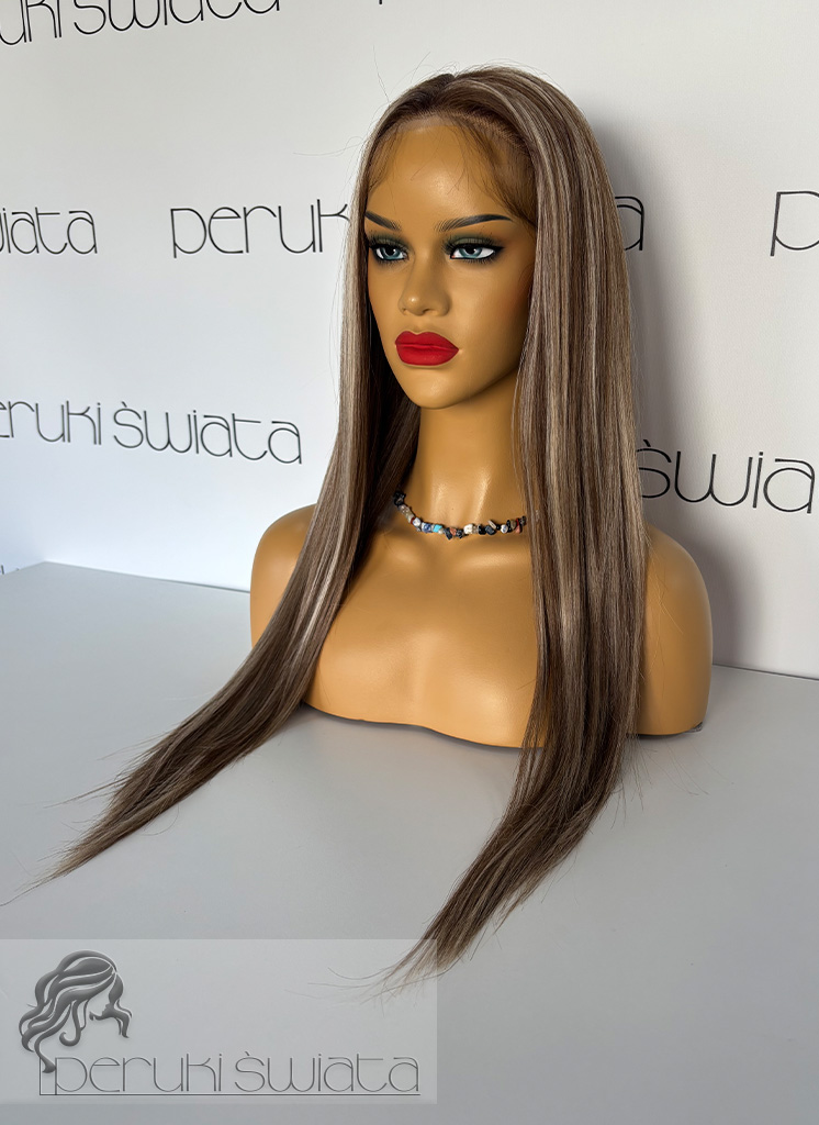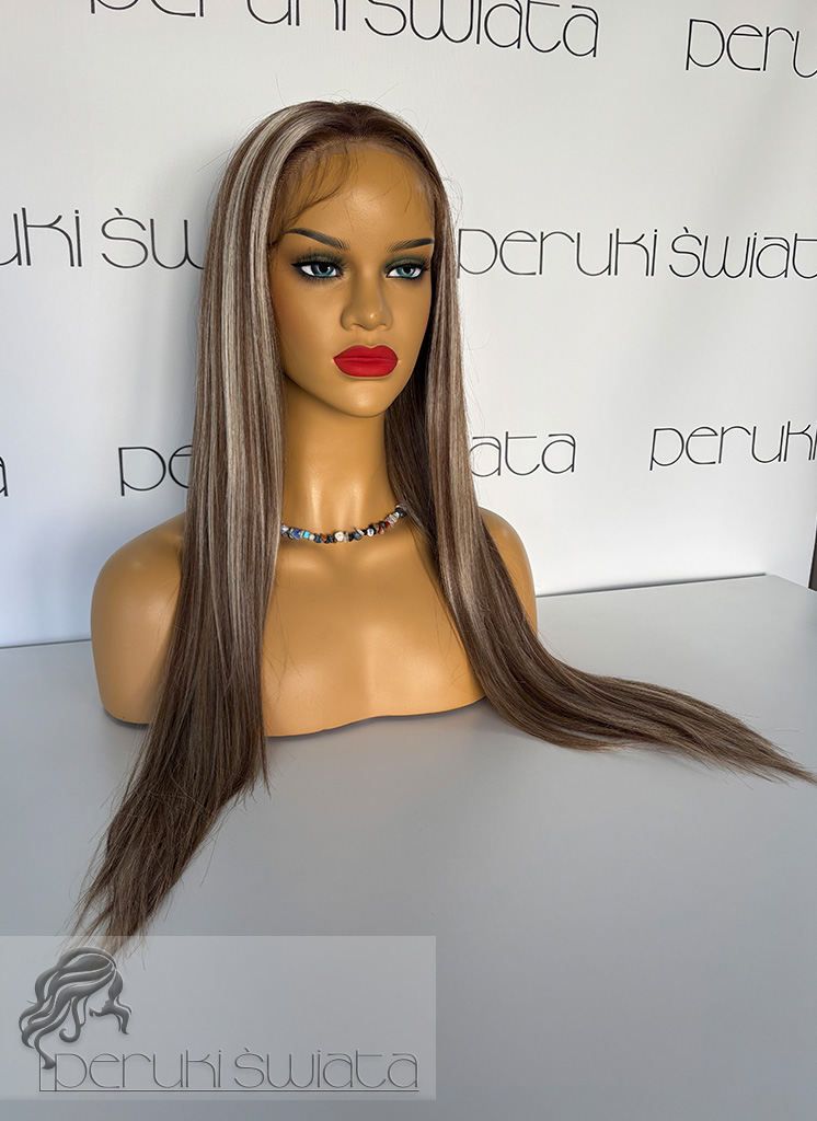 Czepek typu: full lace front (możliwość dowolnego zaczesania przedziałka w obrębie siateczki, podcięcia grzywki, efekt wyrastania włosów z głowy, rozmyta linia przednia peruki)
