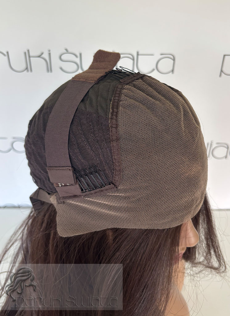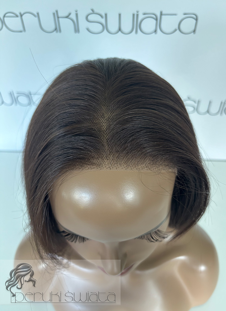 Czepek typu: full lace front (możliwość dowolnego zaczesania przedziałka w obrębie siateczki, podcięcia grzywki, efekt wyrastania włosów z głowy, rozmyta linia przednia peruki)