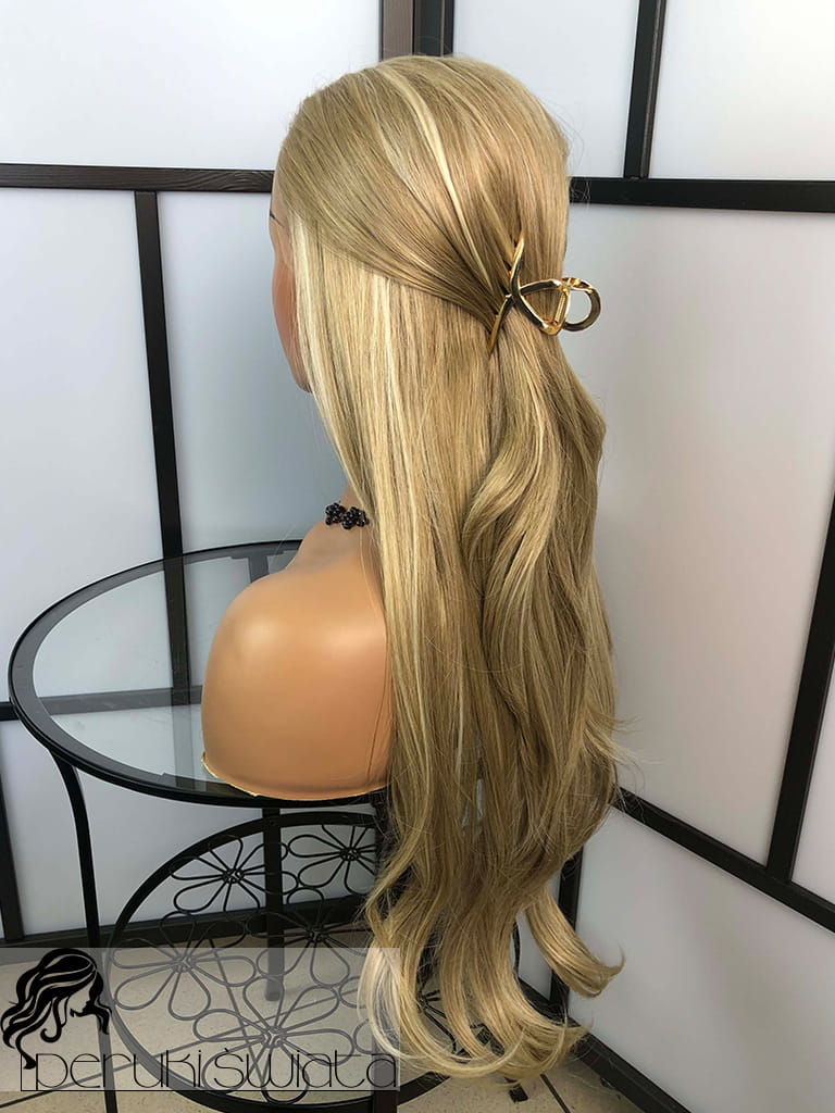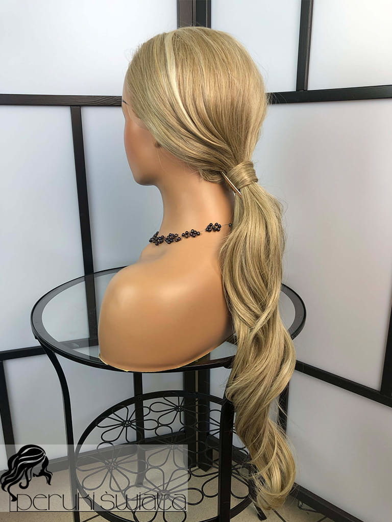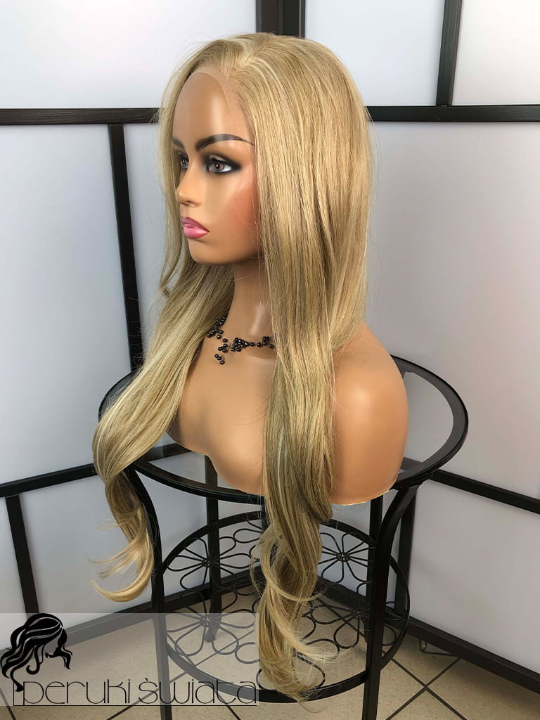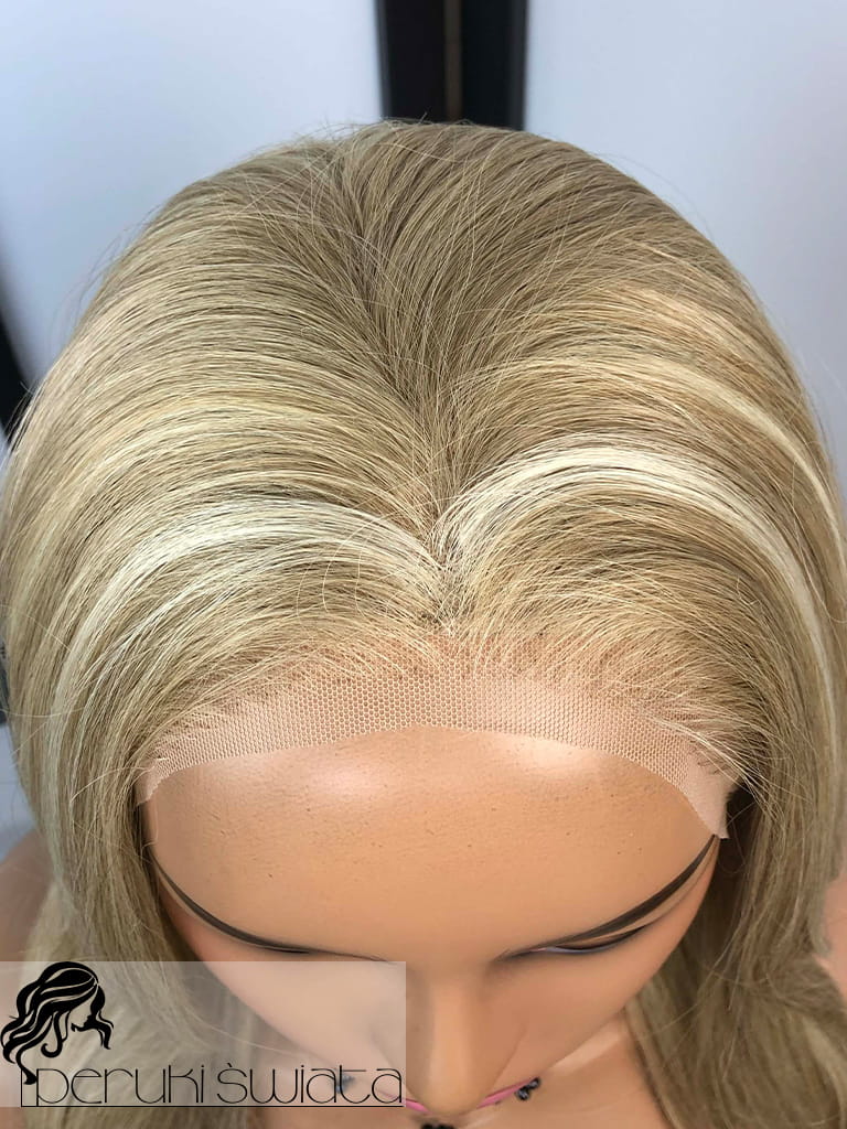 Model Sonia, peruka syntetyczna z kanekalonu, słowiański blond z odrostem, czepek full lace front